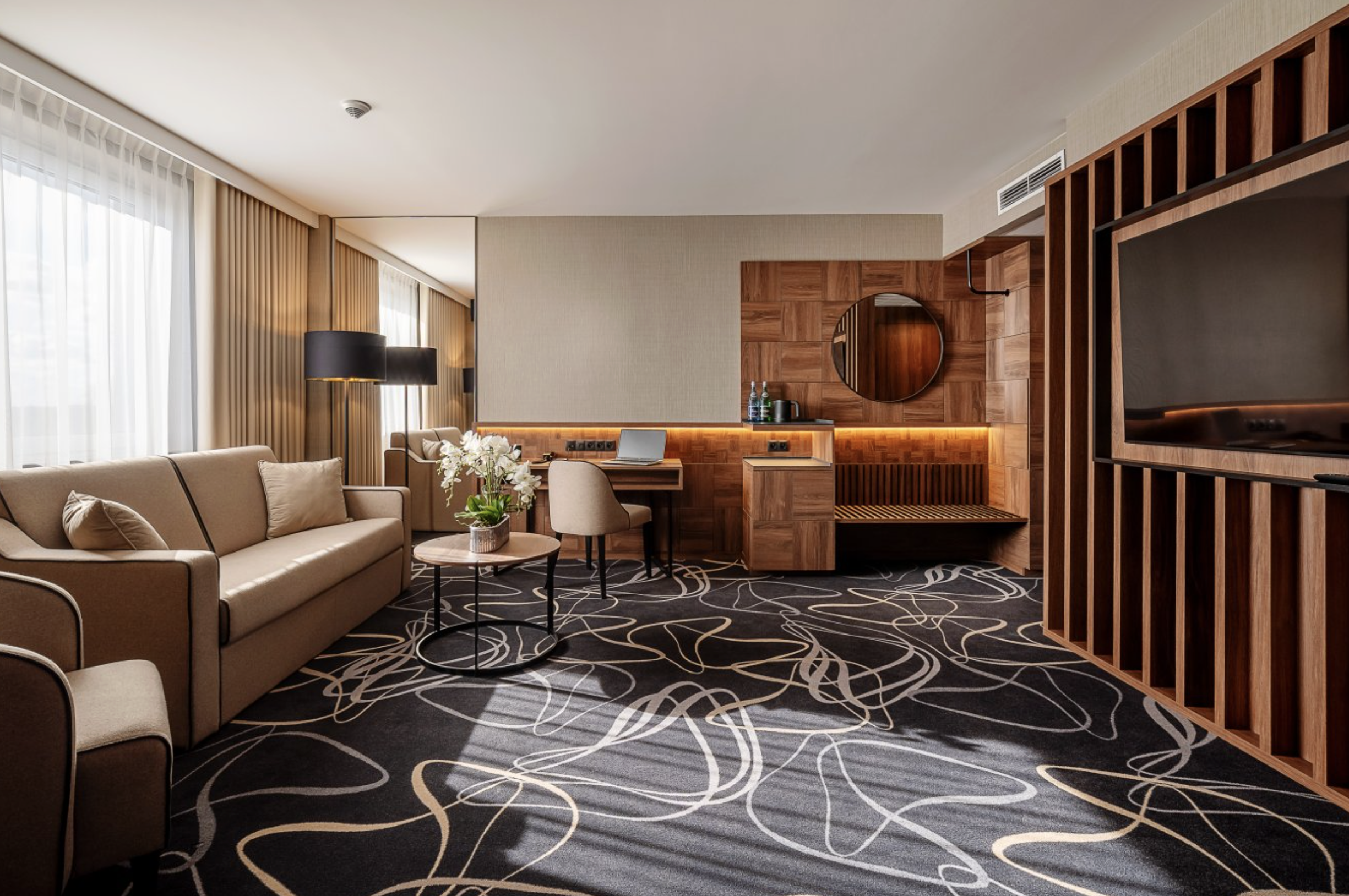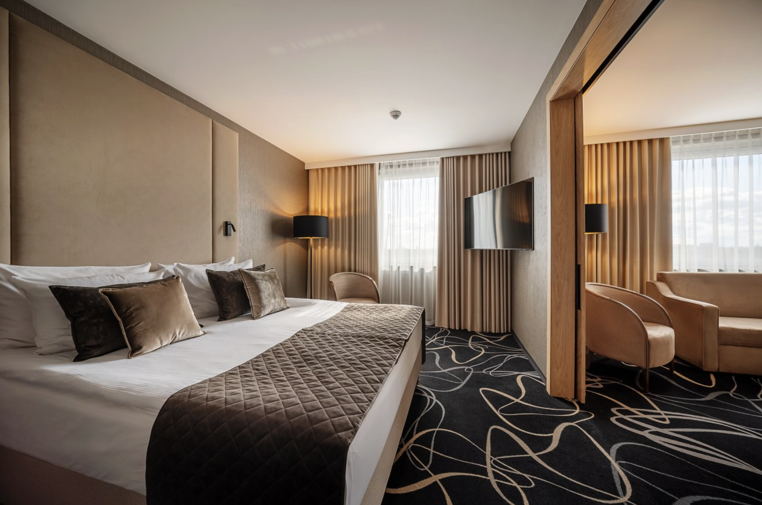 Dla bardziej kameralnych spotkań hotel oferuje eleganckie sale biznesowe zlokalizowane na wyższych piętrach. Widok na lotnisko oraz panoramę Warszawy nadaje spotkaniom wyjątkowego charakteru, a jednocześnie sprzyja skupieniu i pracy w bardziej prywatnej atmosferze.