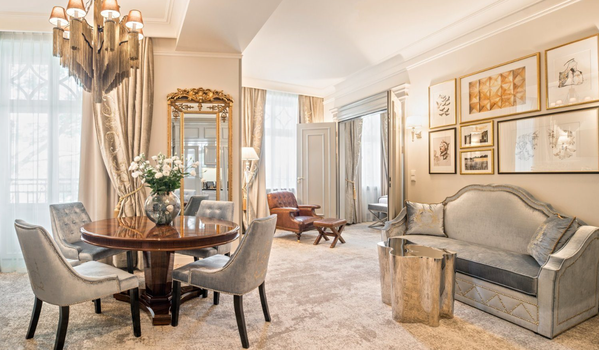 Po intensywnym dniu wypełnionym rozmowami biznesowymi, goście mogą zrelaksować się w jednym z 64 luksusowych pokoi, w tym trzech wyjątkowych apartamentów. Każde wnętrze zachwyca połączeniem paryskiej elegancji i londyńskiego szyku, a dominująca kolorystyka granatu i złota nadaje im charakteru i prestiżu. Przestronne łazienki wyposażone są w wygodne wanny lub prysznice, miękkie łóżka otulają najwyższej jakości pościel, a nowoczesne udogodnienia – w tym telewizory LCD oraz szybkie łącze internetowe – zapewniają pełen komfort zarówno podczas wypoczynku, jak i pracy zdalnej.