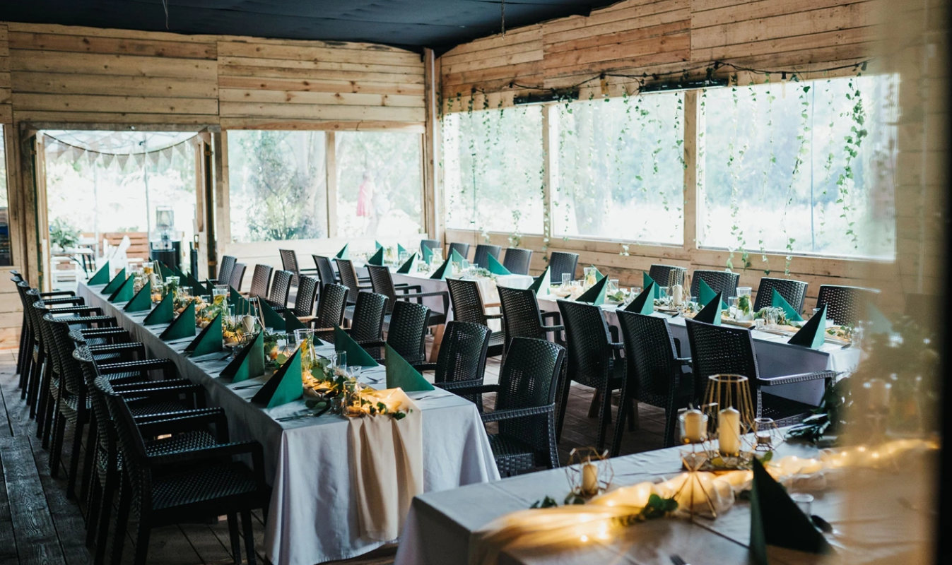 Wyobraź sobie spotkanie biznesowe, które odbywa się nie w sterylnej sali z białymi ścianami, ale w ciepłym, drewnianym wnętrzu, wypełnionym zapachem drewna i blaskiem nastrojowych lampek. Tak właśnie wygląda organizacja wydarzeń w Bez Słowa. Centralnym punktem obiektu jest klimatyczna, drewniana stodoła, mogąca pomieścić do 100 osób w układzie zasiadanym lub nawet 150 w formule koktajlowej.