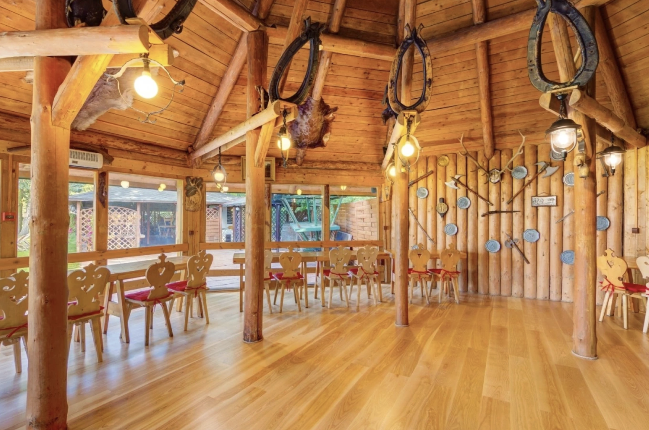 Dla mniejszych grup dostępna jest również kameralna Chata Grillowa, a rozległy teren zielony wokół obiektu umożliwia organizację dużych wydarzeń plenerowych, pikników czy aktywności team-buildingowych.