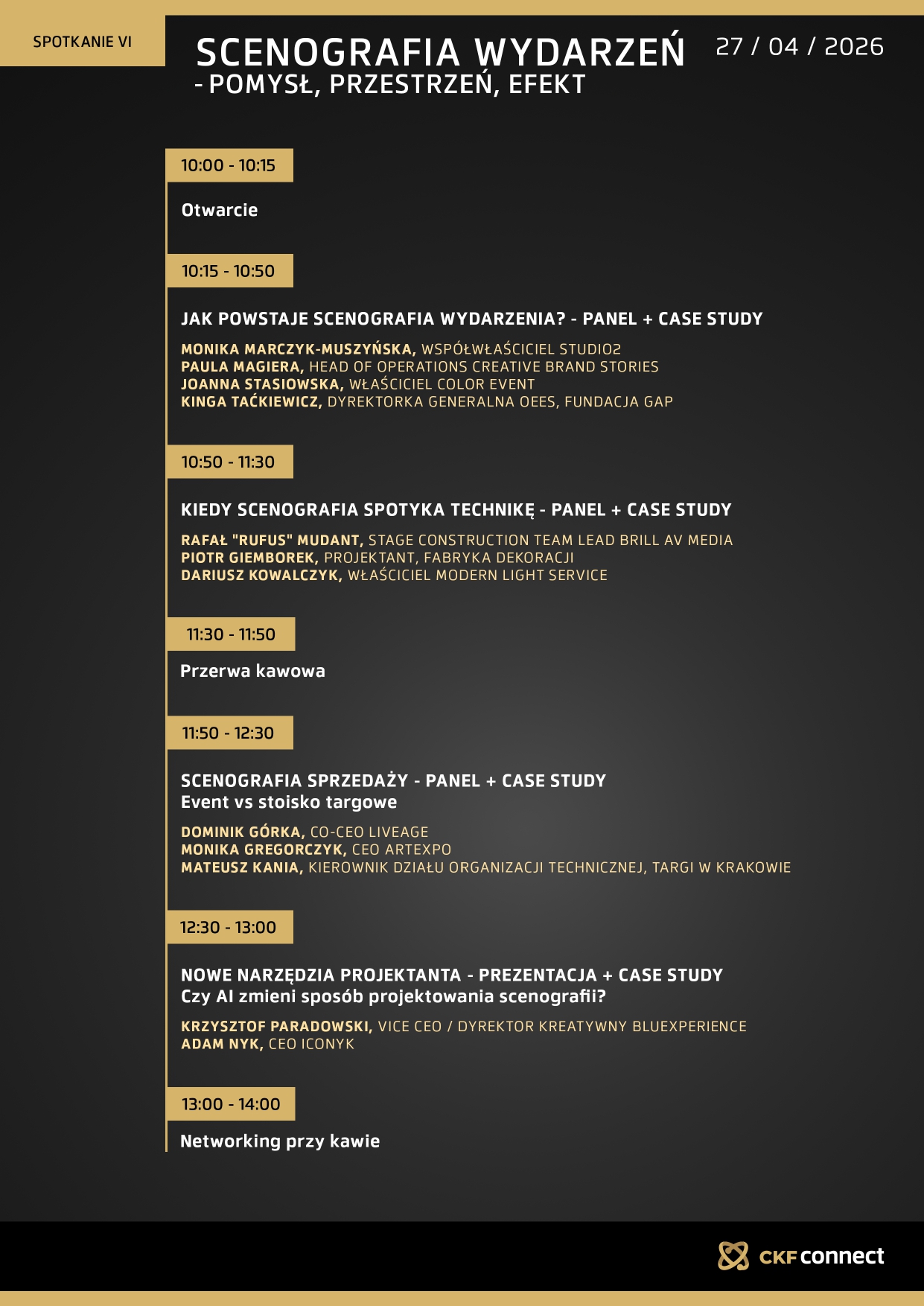 CKF Connect vol. 6 to propozycja dla wszystkich, którzy chcą lepiej zrozumieć, jak powstają współczesne eventy i jaką rolę odgrywa w nich scenografia.