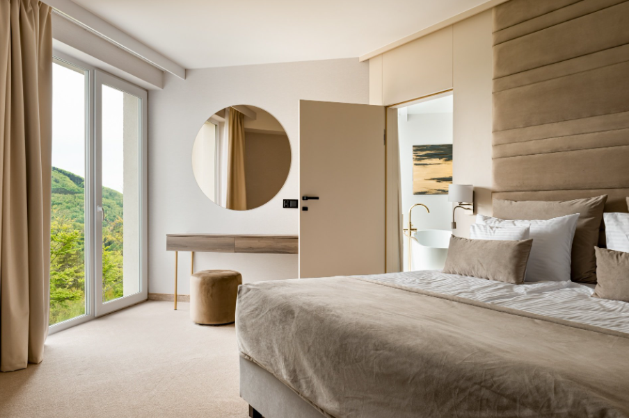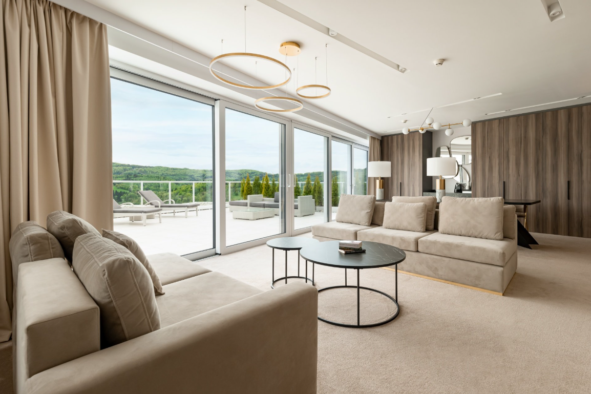 Po intensywnych spotkaniach konferencyjnych, każdy gość znajdzie ukojenie w jednym z 491 eleganckich pokoi, które łącznie mogą pomieścić nawet 1000 uczestników wydarzeń. Wnętrza utrzymane są w nowoczesnym, lecz ciepłym stylu – z naturalnymi barwami, miękkimi tkaninami i subtelnymi akcentami inspirowanymi górską naturą.