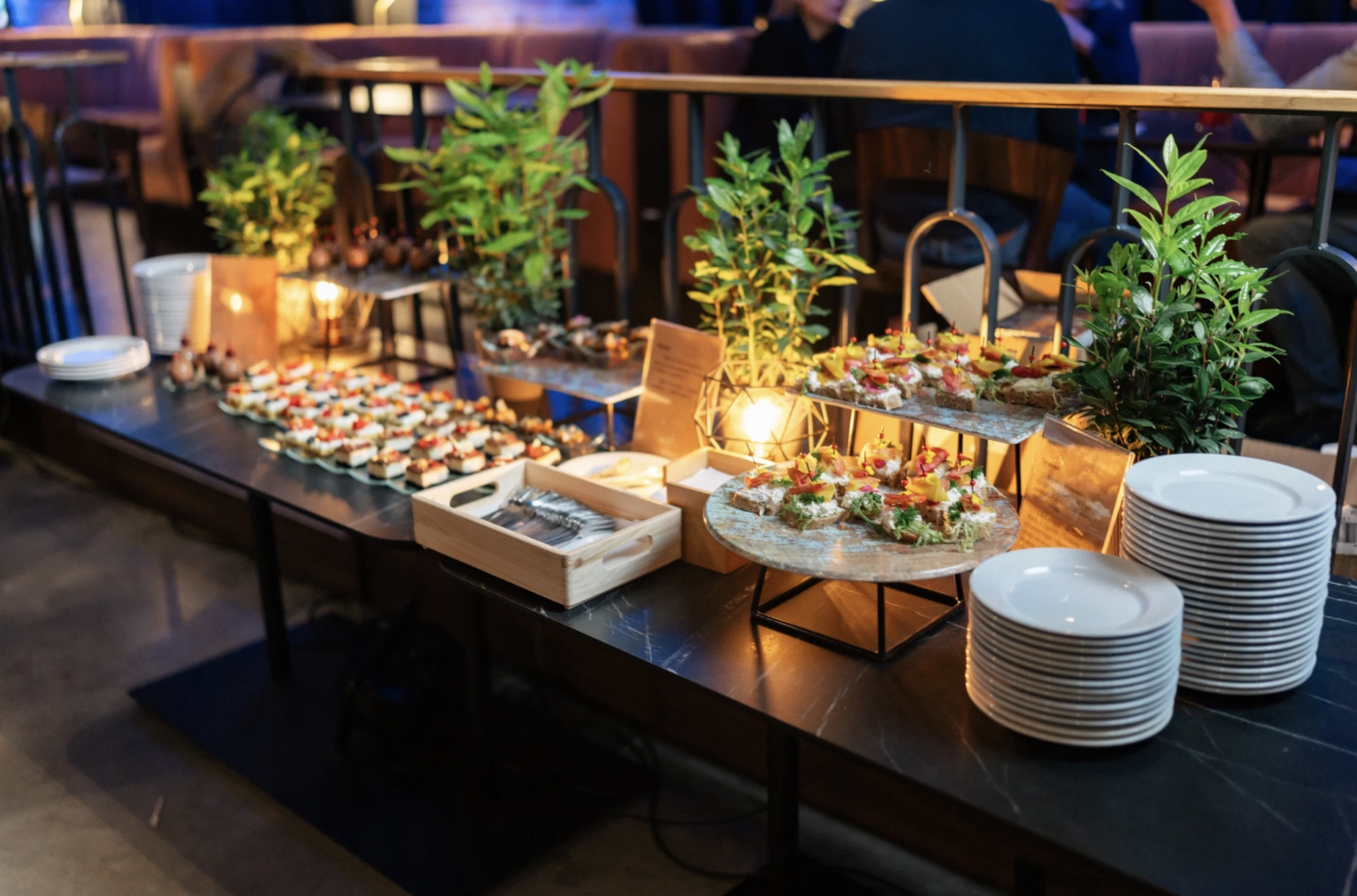 Event Hall oferuje pełne zaplecze cateringowe, które można dostosować do skali i charakteru wydarzenia. W ofercie znajdują się zarówno lekkie przekąski typu finger food, jak i pełne lunche, kolacje bufetowe czy śniadania. Menu może być elastycznie dopasowane do potrzeb gości, co pozwala stworzyć spójne doświadczenie eventowe.