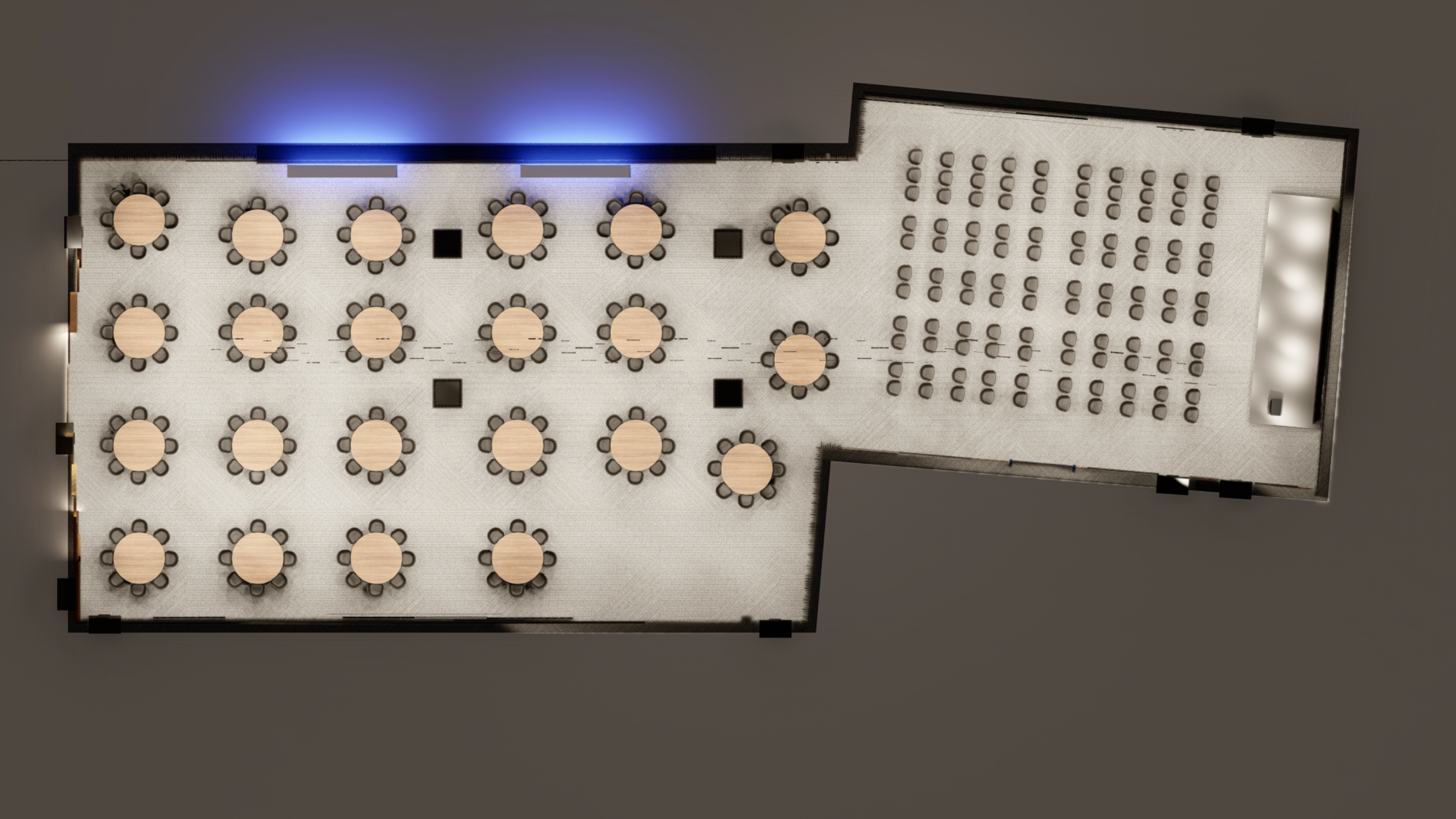 Przestrzeń o powierzchni około 670 metrów kwadratowych została zaprojektowana z myślą o maksymalnej elastyczności. To miejsce, które można dowolnie aranżować i dopasować do charakteru wydarzenia - od konferencji i kongresów, jubileuszy, po eventy firmowe czy bankiety.