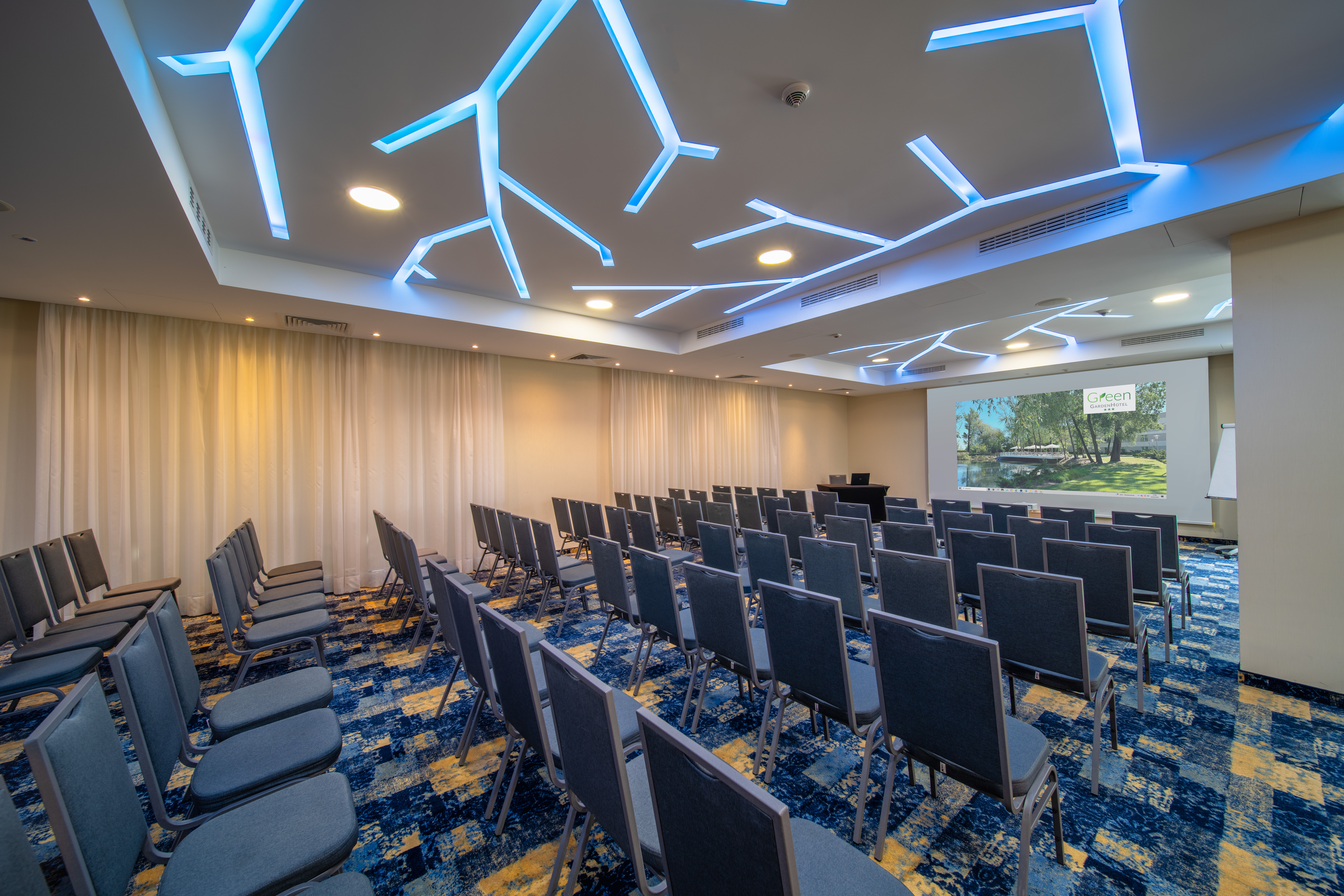 Green Garden Hotel oferuje nowoczesne, klimatyzowane sale konferencyjne, które mogą pomieścić do 160 osób. Każda przestrzeń wyposażona jest w szybkie, bezpłatne Wi-Fi oraz wysokiej klasy sprzęt multimedialny: projektor, ekran, flipcharty i komplet przyborów. Sale są uniwersalne – doskonale sprawdzą się zarówno w układzie konferencyjnym, wykładowym, jak i warsztatowym.