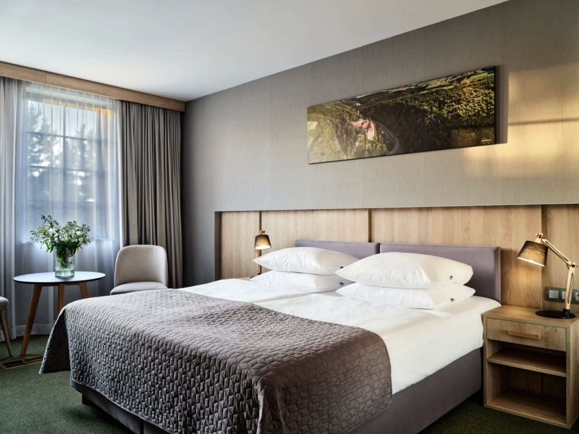 Istotnym elementem każdego wydarzenia biznesowego jest możliwość zapewnienia uczestnikom wygodnego wypoczynku. Hotel oferuje 65 funkcjonalnych pokoi, które łącznie zapewniają około 140 miejsc noclegowych.