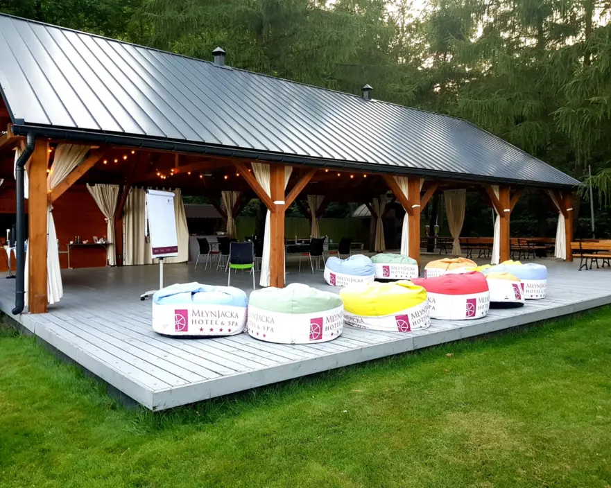 Hotel Młyn Jacka to znacznie więcej niż przestrzeń konferencyjna – to kompleksowe centrum relaksu i integracji. Goście mogą korzystać z rozbudowanej strefy Wellness & SPA, obejmującej m.in. basen z przeciwprądem, hydromasaże, jacuzzi, gejzery powietrzne, sauny (fińska, bio, parowa, infrared), aromaterapię oraz seanse relaksacyjne z muzykoterapią. Bogata oferta zabiegów kosmetycznych i masaży pozwala zregenerować siły po intensywnych spotkaniach. Na potrzeby integracji firmowych dostępna jest również kręgielnia trzytorowa oraz stół bilardowy – idealne na wieczorne spotkania i budowanie relacji w mniej formalnej atmosferze. Dodatkowo organizatorzy wydarzeń mogą skorzystać z oferty agencji eventowej Projekt Efektywny, która oferuje ponad 50 gotowych gier team buildingowych, doskonale uzupełniających pobyty integracyjne i szkoleniowe.