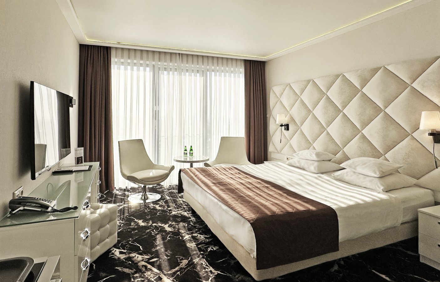 Sale są w pełni wyposażone w profesjonalny sprzęt: klimatyzację, nagłośnienie, ekran, projektor, mikrofony, dostęp do szybkiego internetu oraz flipchart. Dodatkowym atutem jest możliwość stworzenia dedykowanej recepcji lub ekspozycji produktów w lobby – a nawet wprowadzenia pojazdu, co otwiera nieograniczone możliwości dla branż motoryzacyjnych i eventowych. Profesjonalny zespół hotelu czuwa nad każdym etapem wydarzenia – od przygotowań po obsługę techniczną – zapewniając, że każde spotkanie przebiegnie perfekcyjnie i pozostawi po sobie doskonałe wrażenie.