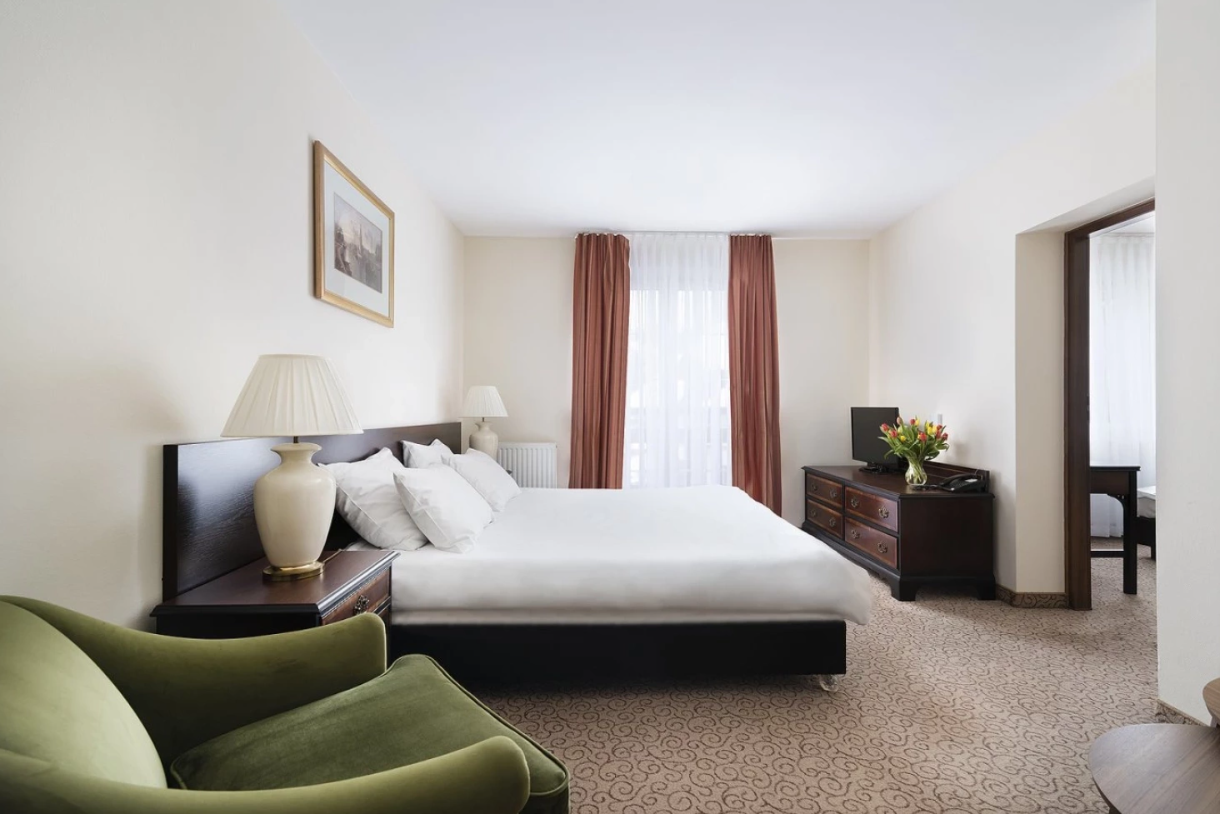 Hotel Wisła PREMIUM*** oferuje 42 przestronne pokoje i apartamenty, zaprojektowane w klasycznym, harmonijnym stylu. To przestrzeń, w której po intensywnym dniu konferencji można naprawdę odpocząć. Każdy pokój zapewnia wysoki standard wyposażenia, funkcjonalność oraz wygodę, tak ważną dla gości biznesowych.