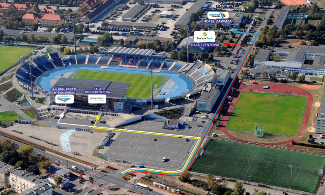 Hotel Zawisza znajduje się na terenie nowoczesnego Kompleksu Sportowego Zawisza, tylko 2 km od centrum Bydgoszczy, a jednocześnie z dala od miejskiego hałasu. Położenie w pobliżu Leśnego Parku Kultury i Wypoczynku Myślęcinek zapewnia ciszę i naturalne otoczenie, co znacząco wpływa na komfort uczestników konferencji.