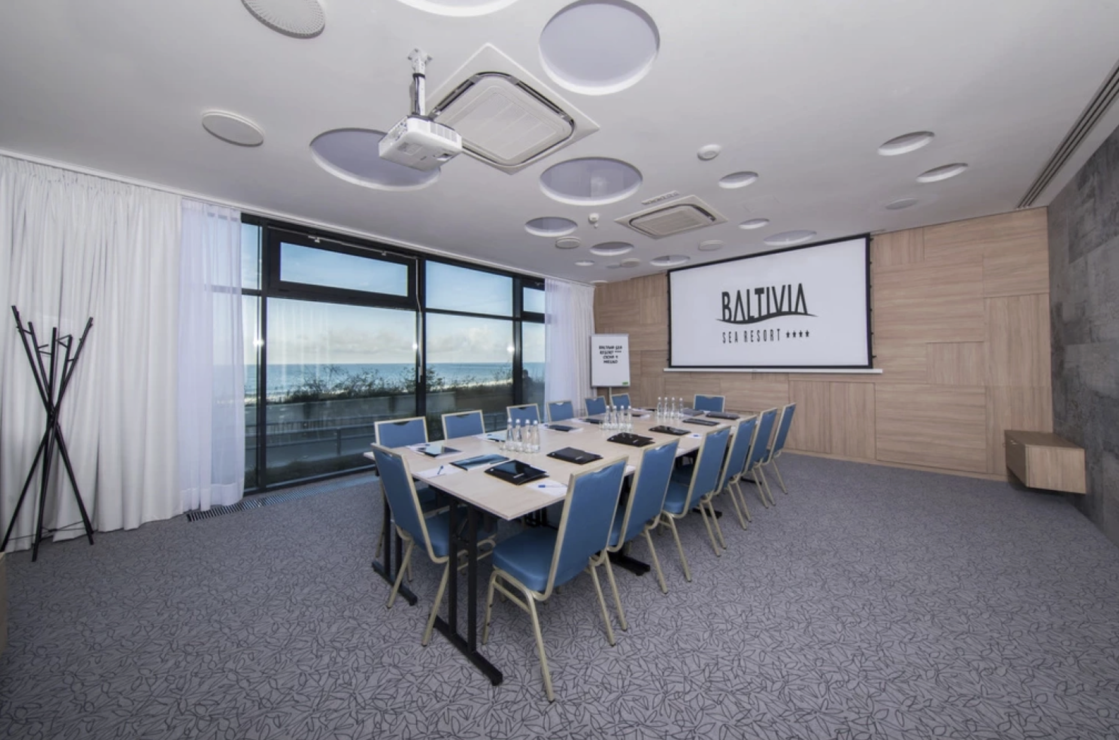 BALTIVIA Sea Resort oferuje kameralną, w pełni wyposażoną salę konferencyjną, która doskonale sprawdza się podczas szkoleń, warsztatów, spotkań zarządu czy firmowych prezentacji. Nowoczesne zaplecze techniczne obejmuje profesjonalne nagłośnienie, szybki Internet oraz niezbędny sprzęt multimedialny.