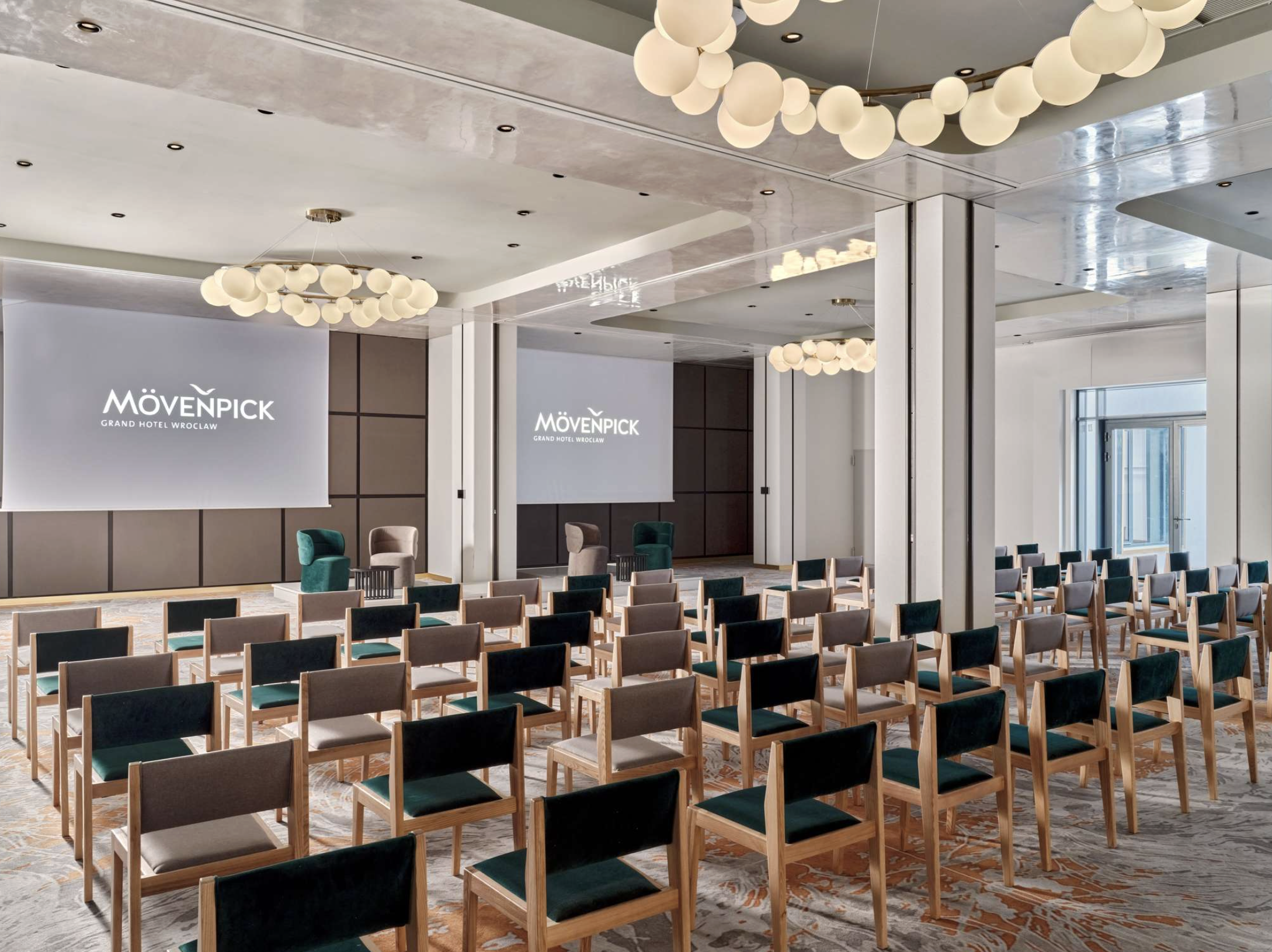 Mövenpick Grand Hotel Wrocław oferuje nowoczesne i funkcjonalne przestrzenie konferencyjne, które zostały zaprojektowane z myślą o różnorodnych wydarzeniach, od spotkań biznesowych po konferencje, szkolenia czy eleganckie przyjęcia.