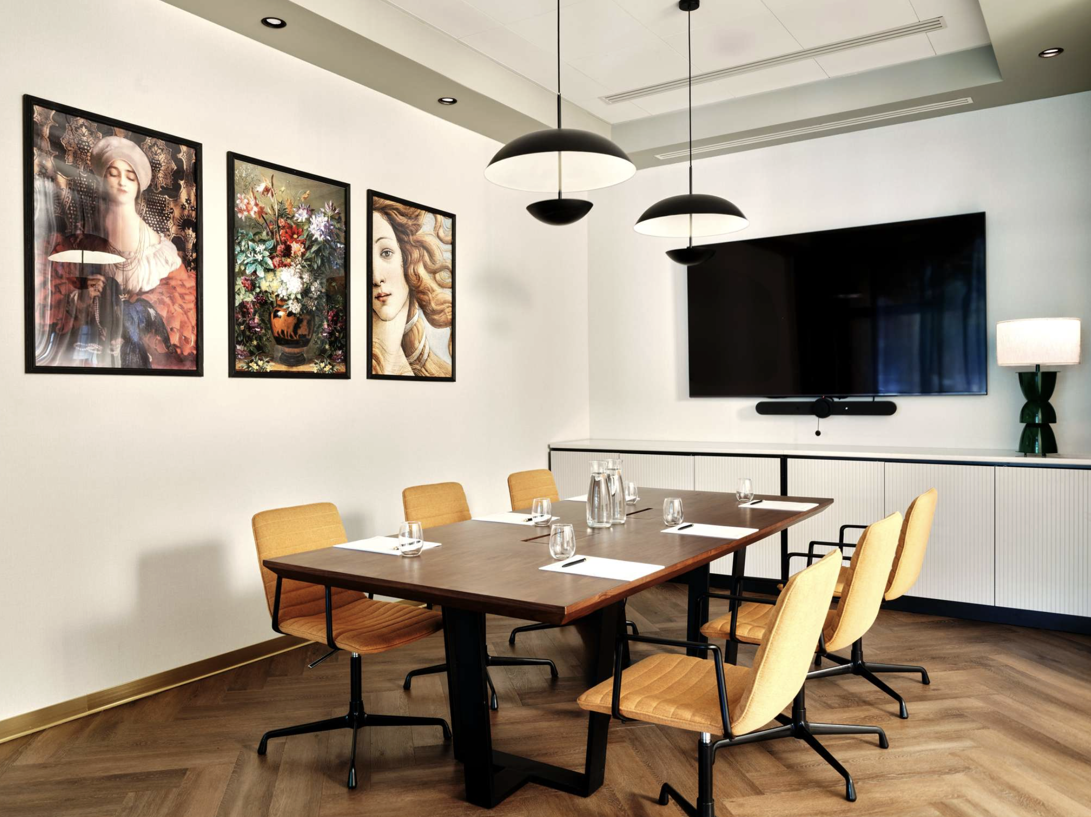 Dla bardziej kameralnych spotkań dostępny jest również Board Room, czyli przestrzeń o powierzchni 21 metrów kwadratowych, idealna na narady zarządu, spotkania biznesowe czy szkolenia w mniejszym gronie.