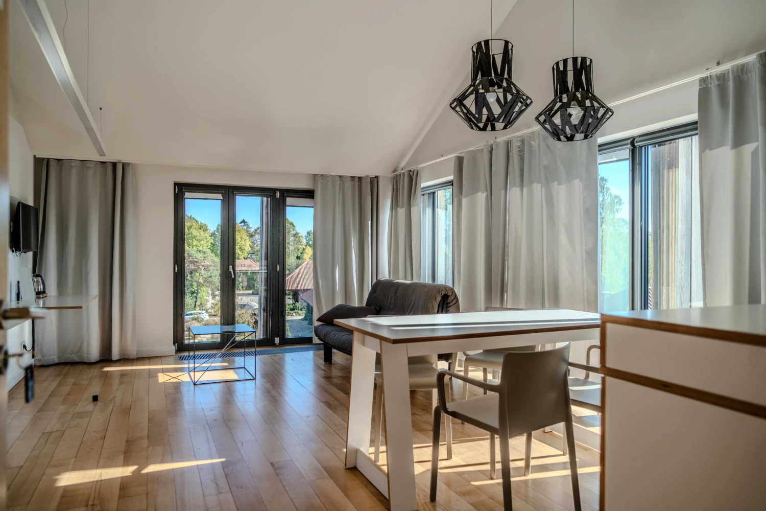Po intensywnym dniu pracy uczestnicy mogą liczyć na maksymalny komfort w jednej z 50 eleganckich i starannie zaprojektowanych jednostek mieszkalnych, co daje łącznie 150 miejsc noclegowych. Minimalistyczny, nowoczesny wystrój pokoi sprzyja wypoczynkowi i wyciszeniu, a wyposażenie – od telewizora i minibaru, po sejf i szybkie Wi-Fi – odpowiada potrzebom współczesnych gości biznesowych. Hotel oferuje głównie pokoje dwuosobowe, ale także rodzinne studia z antresolą, mogące pomieścić nawet 6 osób – wyjątkowo praktyczna opcja przy pobytach grupowych. Co istotne, obiekt zadbał również o gości z niepełnosprawnościami, oferując pokoje przystosowane do ich potrzeb i ułatwiające swobodne poruszanie się po przestrzeni hotelowej.