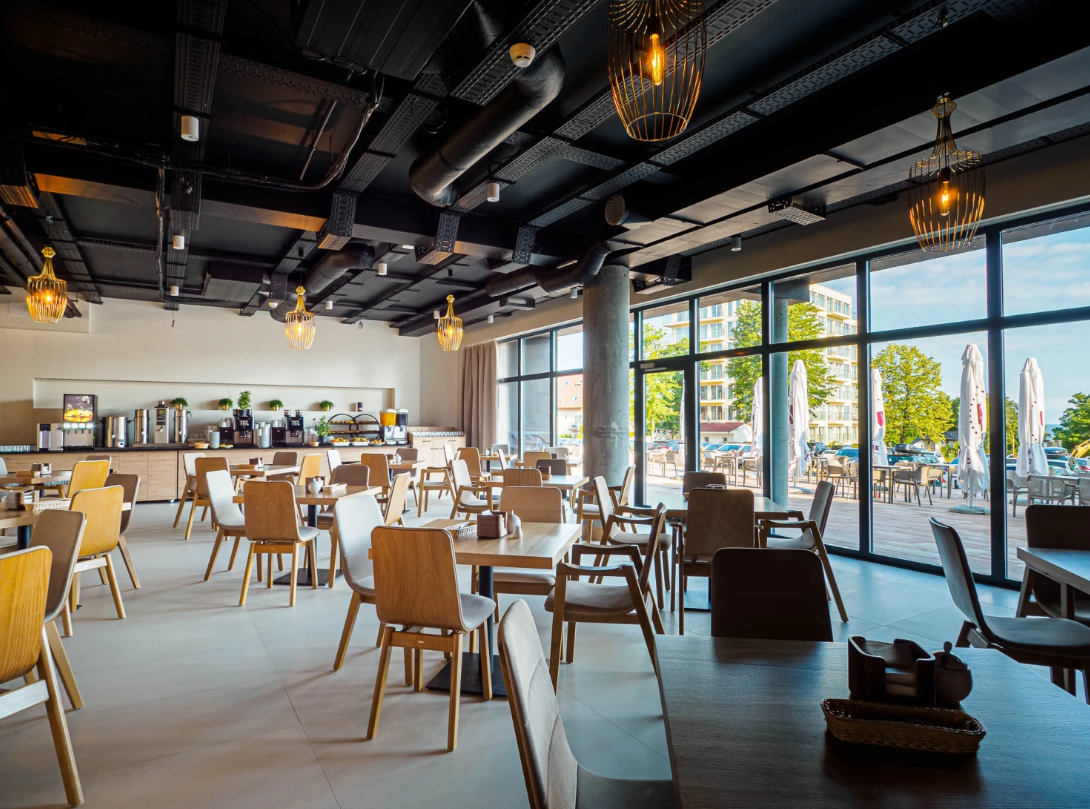 Silnym punktem resortu jest restauracja serwująca dania kuchni polskiej i światowej, ze szczególnym uwzględnieniem lokalnych produktów. Specjalnością są potrawy z dziczyzny, drobiu oraz wędliny własnej produkcji, które idealnie sprawdzają się zarówno podczas eleganckich kolacji biznesowych, jak i mniej formalnych spotkań integracyjnych. Taras z widokiem na morze dodaje każdemu posiłkowi wyjątkowego klimatu.