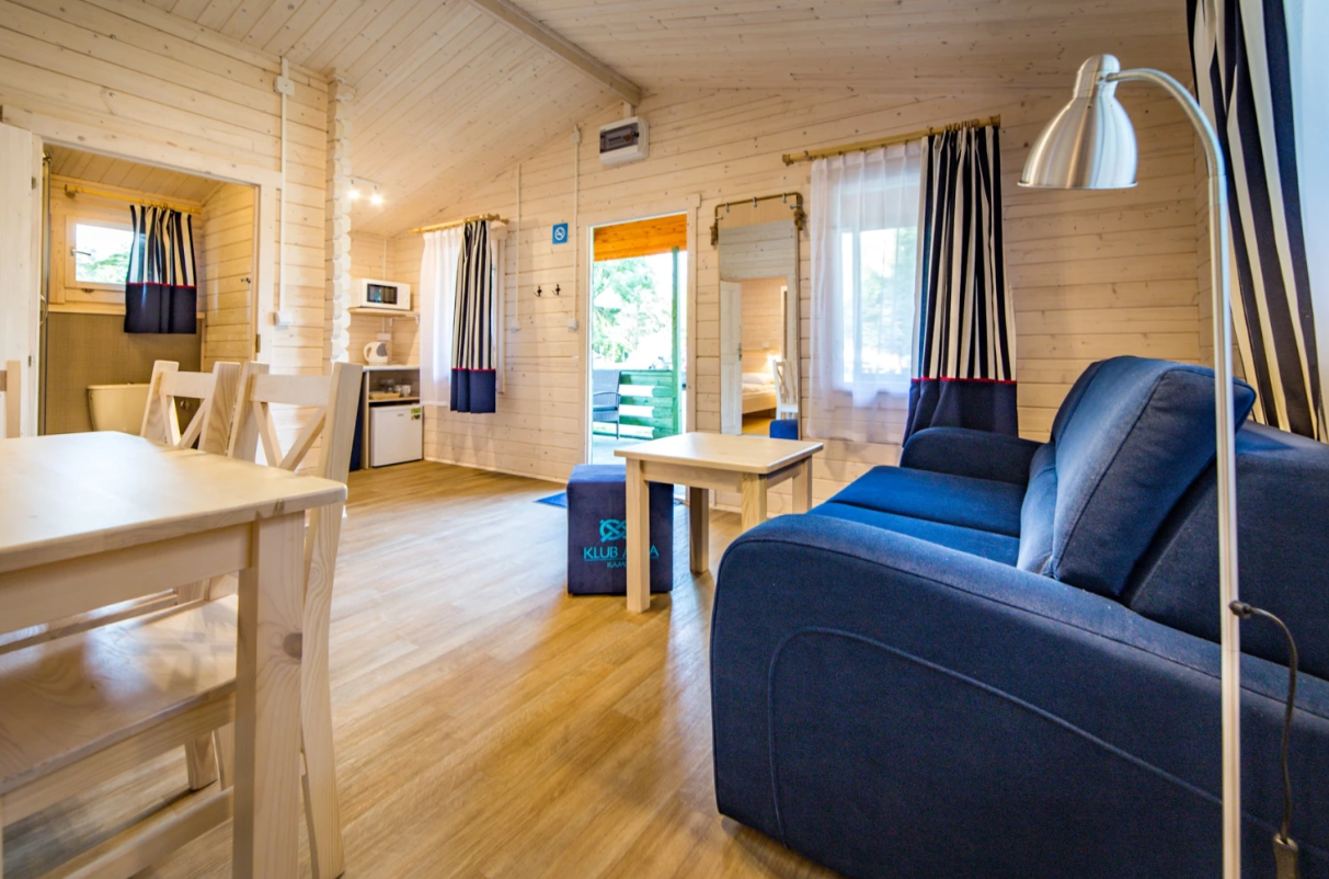 Drewniane, bielone wykończenia, marynistyczne akcenty i przytulna atmosfera sprawiają, że każdy pokój ma niepowtarzalny klimat. Goście czują się tu swobodnie, jak w mazurskiej wiosce, a jednocześnie mogą liczyć na pełen komfort i wygodę.
