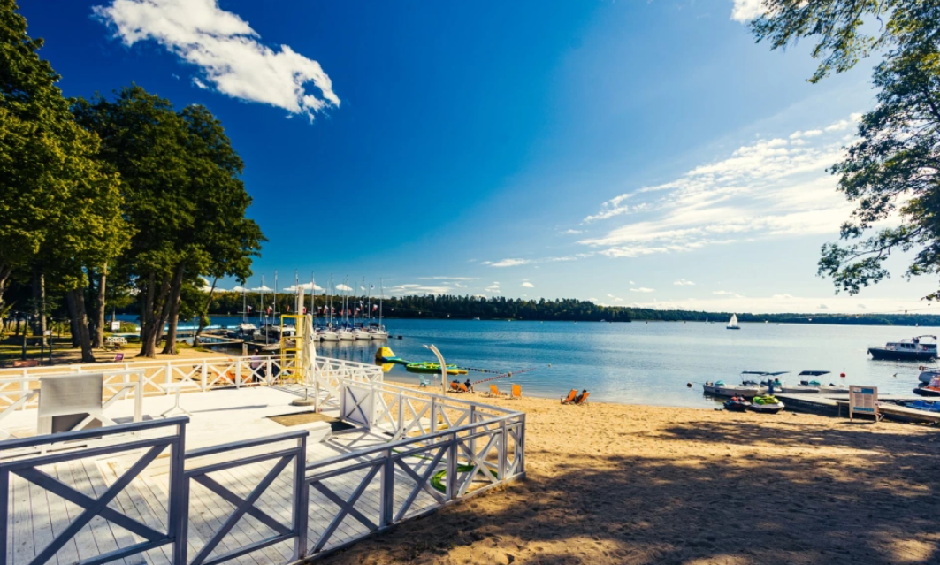 Ośrodek leży nad brzegiem jeziora Bełdany, otoczony gęstymi lasami, które wprowadzają harmonię i spokój od pierwszych chwil pobytu. To zaledwie 205 kilometrów od Warszawy, co sprawia, że podróż nie jest uciążliwa, a nagrodą za nią staje się widok tafli jeziora i zapach sosnowego lasu. Bliskość miejscowości Ruciane-Nida oraz tylko 15 kilometrów do turystycznych Mikołajek czynią lokalizację niezwykle atrakcyjną – zarówno dla firm z całej Polski, jak i dla gości zagranicznych.