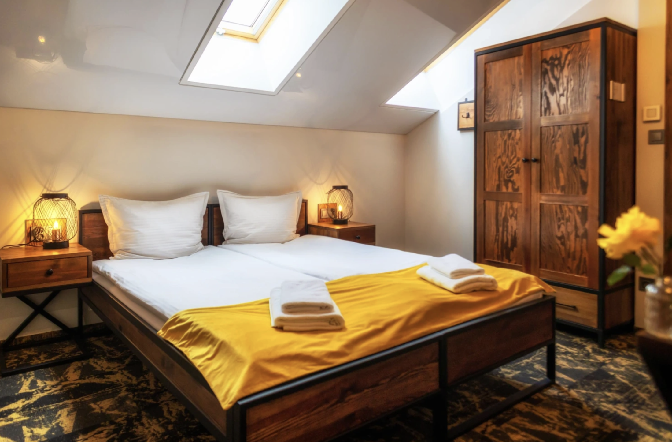 Pawie Oczko oferuje zaplecze noclegowe dla około 60 gości, rozmieszczonych w dwudziestu nowoczesnych i przestronnych pokojach jedno-, dwu- oraz trzyosobowych. Każde wnętrze zostało zaprojektowane z dbałością o estetykę i funkcjonalność, zapewniając uczestnikom wydarzeń komfortowy wypoczynek po intensywnym dniu spotkań.