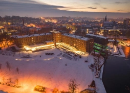 Nie można mówić o MONKA Młyny Rothera, nie wspominając o jego lokalizacji. Położony w samym sercu Bydgoszczy, nad wodą, w otoczeniu zieleni i zabytkowych murów, obiekt emanuje spokojem i elegancją. Wyspa Młyńska od lat stanowi wizytówkę miasta – to przestrzeń, w której historia spotyka się z nowoczesnością. Właśnie tu, w dawnych Młynach Rothera, tętni życie biznesowe, kulturalne i towarzyskie.