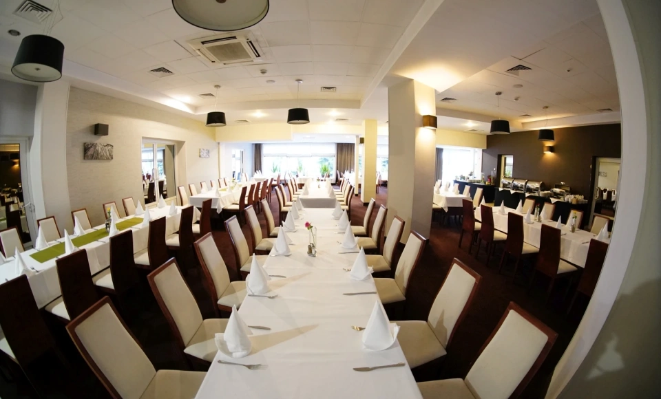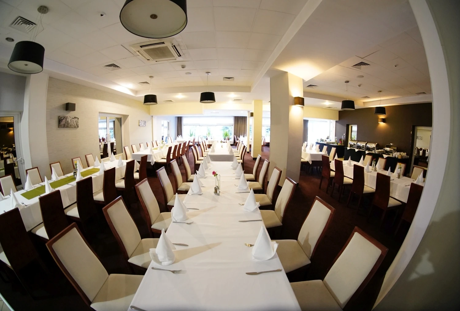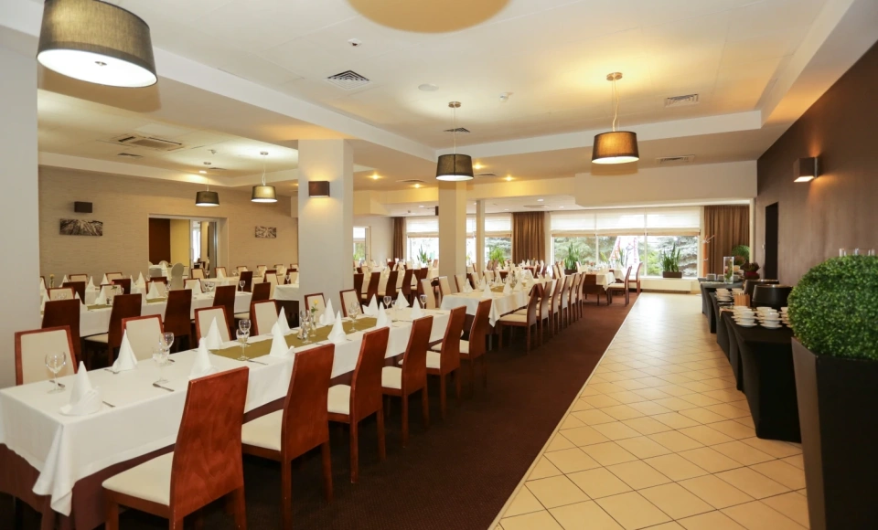 Tak, hotel oferuje cztery klimatyzowane sale restauracyjne mieszczące łącznie około 300 osób. Szef Kuchni dba o wysoką jakość dań, a goście mogą również korzystać z Fever Club oraz plenerowych altan grillowych, idealnych na kameralne wieczory czy imprezy firmowe.