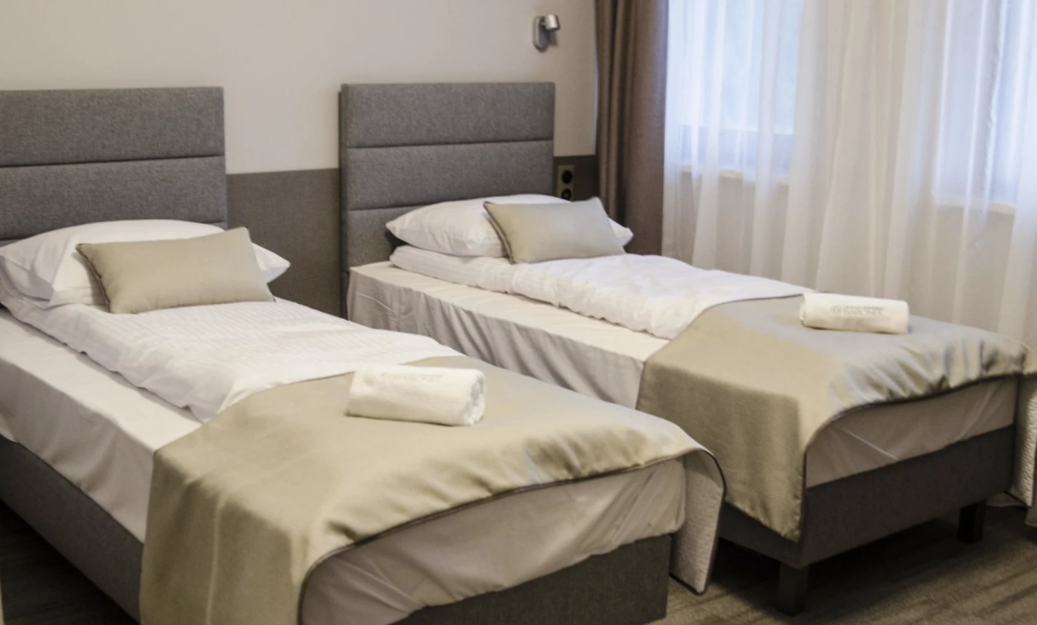 Do dyspozycji gości oddano 11 komfortowych pokoi dwuosobowych z prywatnymi łazienkami. Baza noclegowa obejmuje 4 pokoje typu double oraz 7 pokoi typu twin, co pozwala elastycznie dopasować zakwaterowanie do potrzeb grup firmowych i organizatorów wydarzeń.