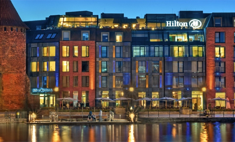 Hilton Hotel to luksusowy, pięciogwiazdkowy obiekt w Gdańsku. Hotel oferuje 150 eleganckich pokoi i apartamentów oraz nowoczesne zaplecze konferencyjno-bankietowe o powierzchni ok. 600 mkw., obejmujące 5 sal konferencyjnych i 2 sale bankietowe. Przestrzenie te umożliwiają organizację konferencji i eventów firmowych nawet do 300 osób. Dodatkowym atutem jest taras Urban Beach, idealny na letnie przyjęcia.