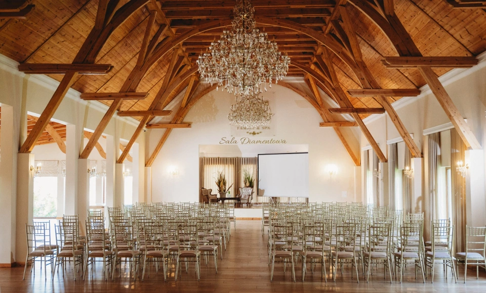 Na gości czeka rozbudowana baza konferencyjna z dwiema salami – większa pomieści do 400 osób, a mniejsza do 50 uczestników. Obie są klimatyzowane, wyposażone w sprzęt multimedialny i dostęp do światła dziennego. Dodatkowo dostępna jest klimatyczna stodoła na eventy do 100 osób oraz wiata w stylu boho, idealna na luźniejsze spotkania i integracje.