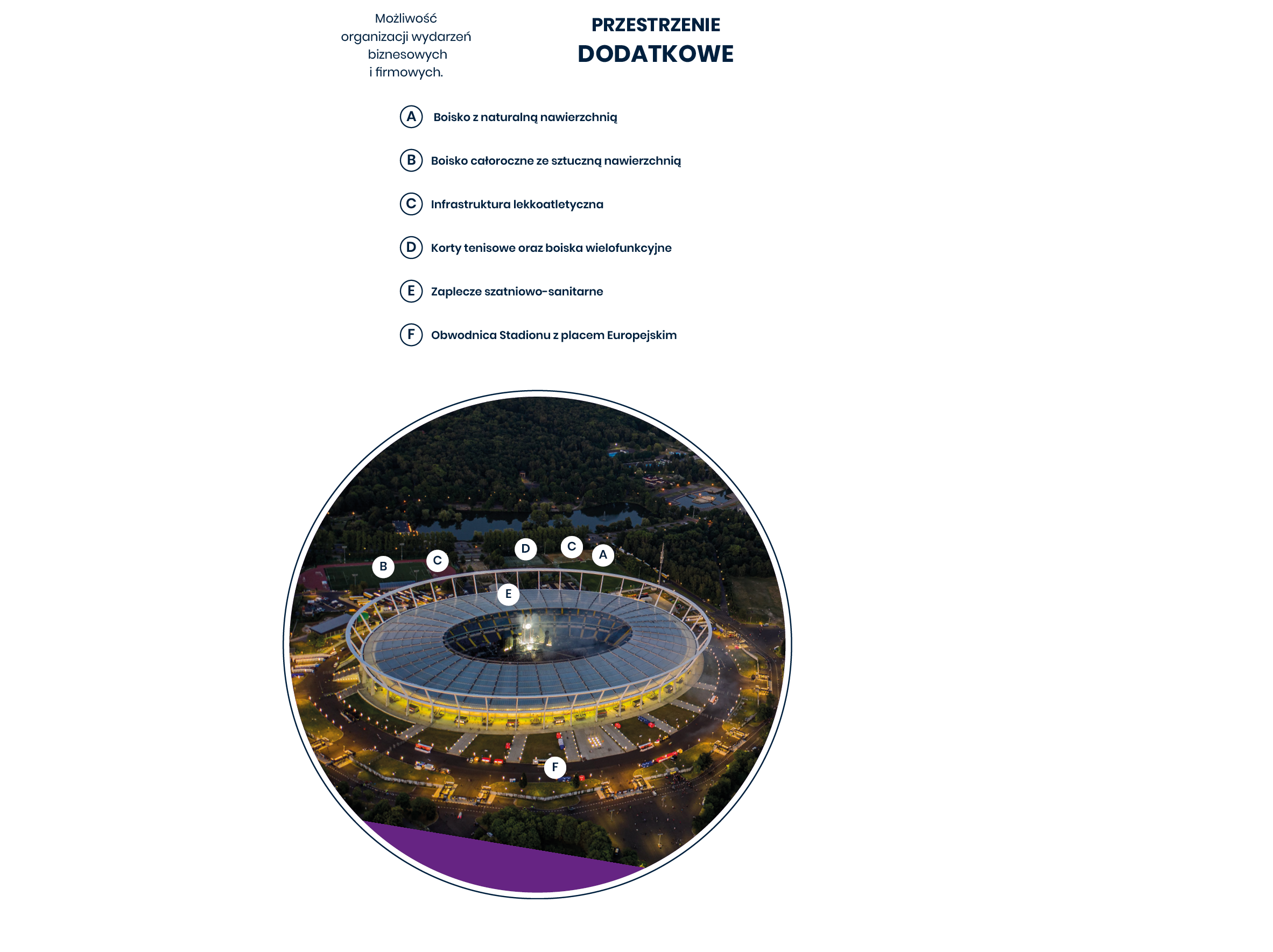 Możliwość wynajmu na imprezy sportowe i kulturalne, odbywające się na Stadionie Śląskim,a także na mniejsze spotkania. Każda loża ma swój taras z 16 miejscami siedzącymi, aby jej goście mogli być w samym centrum wielkich wydarzeń.