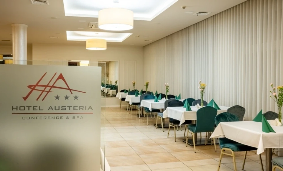 Idealne miejsce do organizacji konferencji czy szkoleń nawet na 500 osób. Hotel Austeria*** Conference & SPA oferuje sale konferencyjne o różnej wielkości, a zaangażowana w swoja prace i miła obsługa sprawia, że organizacja takiego przedsięwzięcia to czysta przyjemność. Osobiście szczególnie cenie w tym miejscu restauracje, która serwuje przepyszne dania kuchni polskiej z nuta nowoczesności.