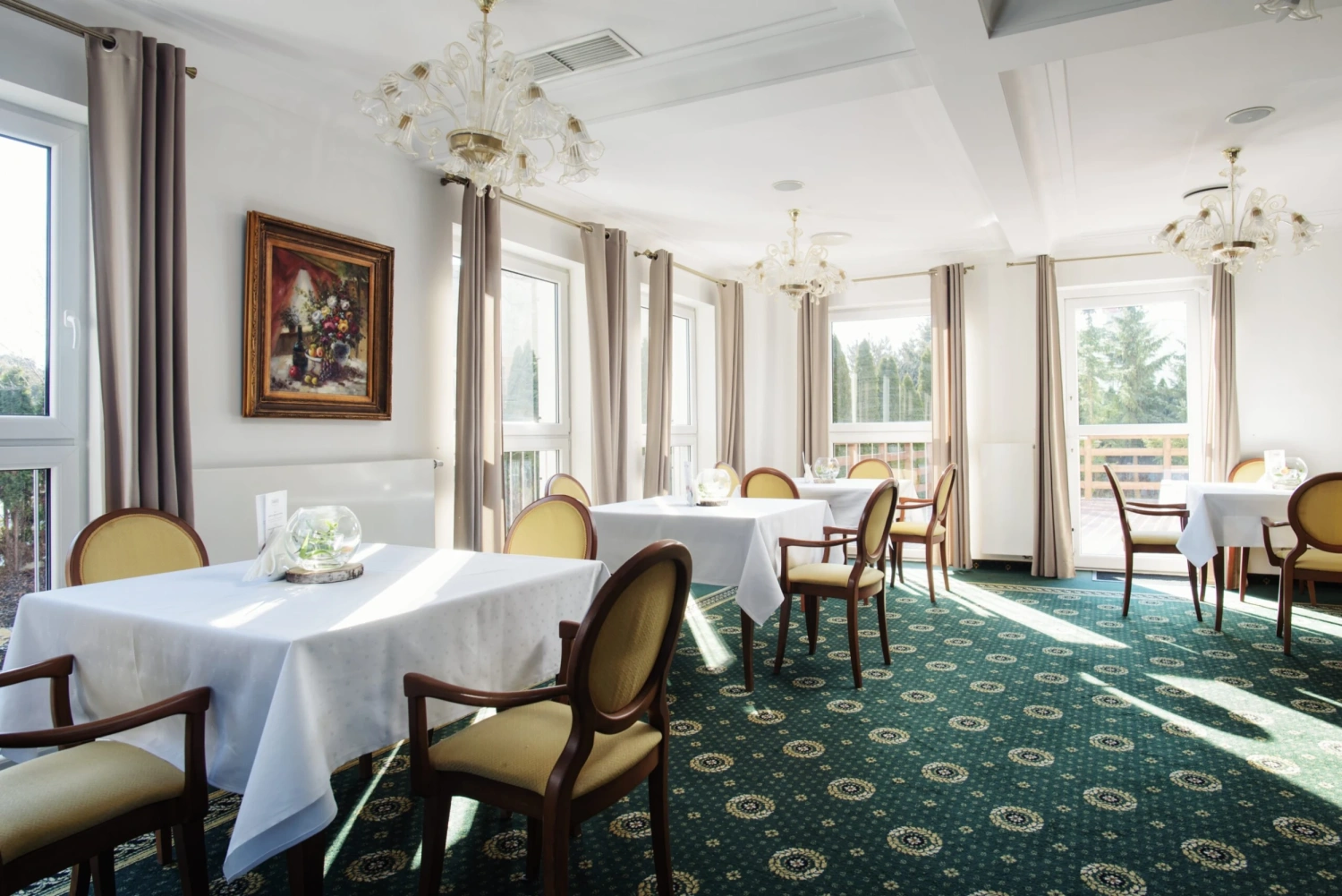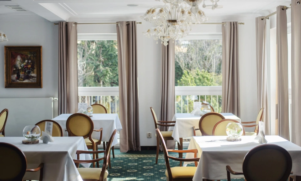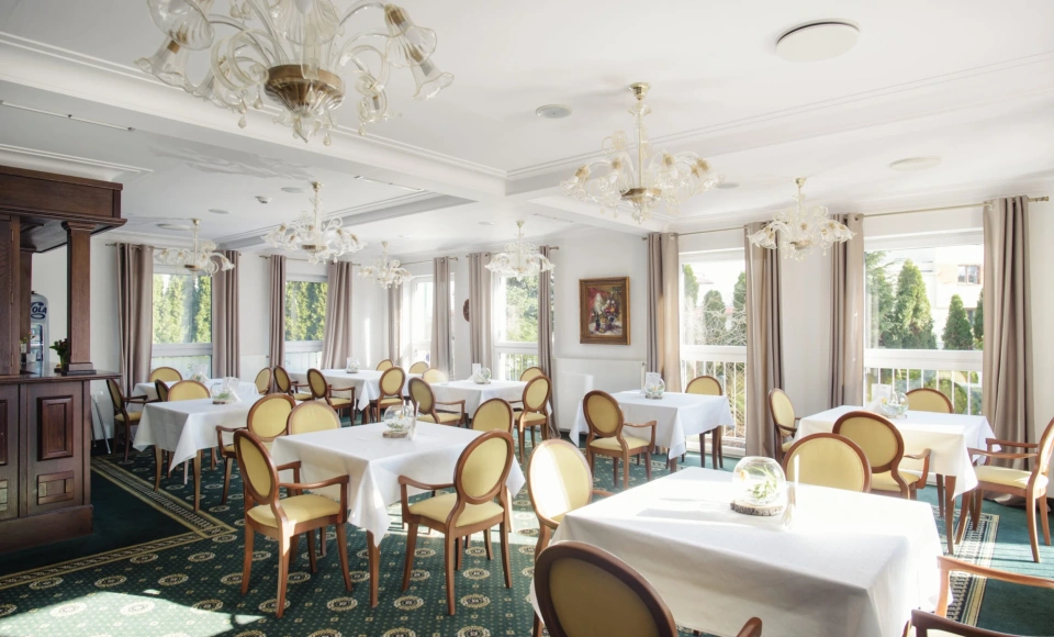 Menu opiera się na sprawdzonych recepturach i lokalnych inspiracjach - dania przygotowywane są na świeżo, z naciskiem na jakość i wyważony smak. Uzupełnieniem oferty jest szeroki wybór napojów, drinków i deserów. Restauracja organizuje również wieczorki taneczne i koncerty, a w cieplejsze dni zaprasza na zewnętrzny taras, gdzie posiłki można celebrować w otoczeniu zieleni.