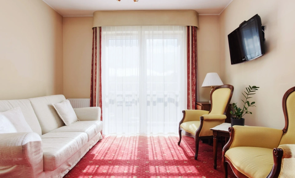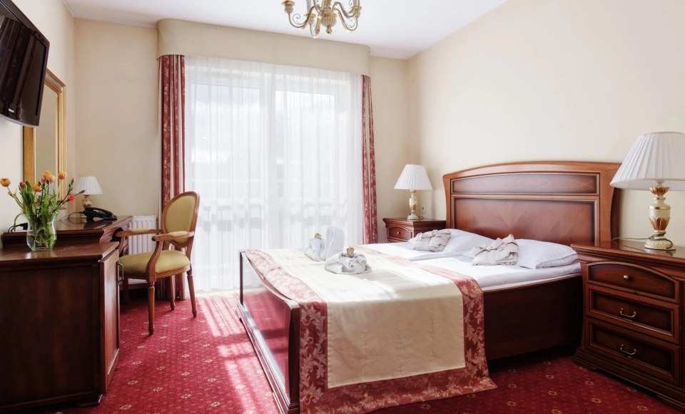 Obiekt oferuje komfortowe noclegi w pokojach jedno- i dwuosobowych oraz apartamentach, pełne wyżywienie oraz dostęp do strefy SPA & Wellness, obejmującej zabiegi relaksacyjne i rehabilitacyjne. Na miejscu działa Restauracja TARAS, oferująca lunche biznesowe, kolacje integracyjne oraz catering.