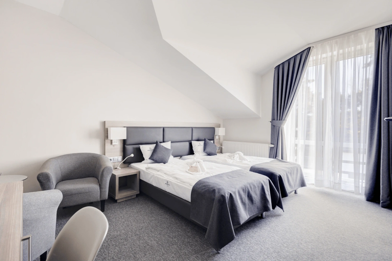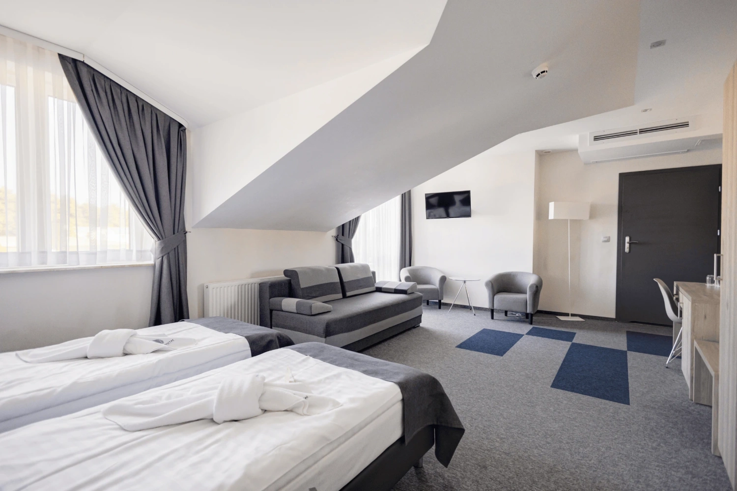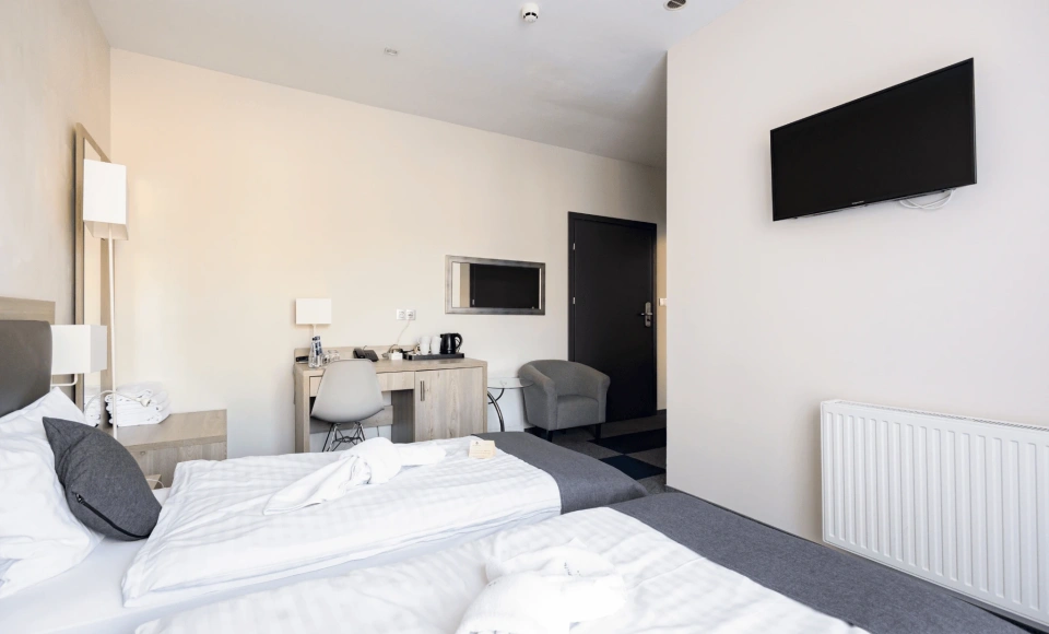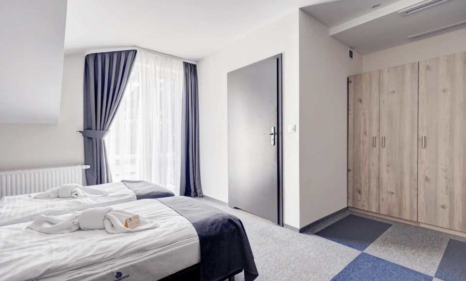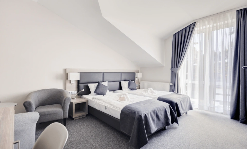 Apartament stanowi komfortową przestrzeń dla kadry zarządzającej lub gości VIP, a kameralna skala hotelu umożliwia organizację wydarzenia z pełną kontrolą nad logistyką i komfortem uczestników.