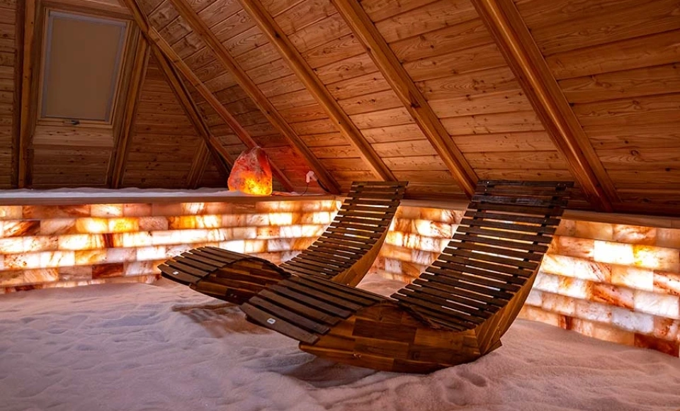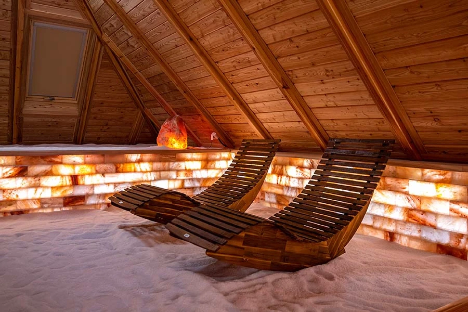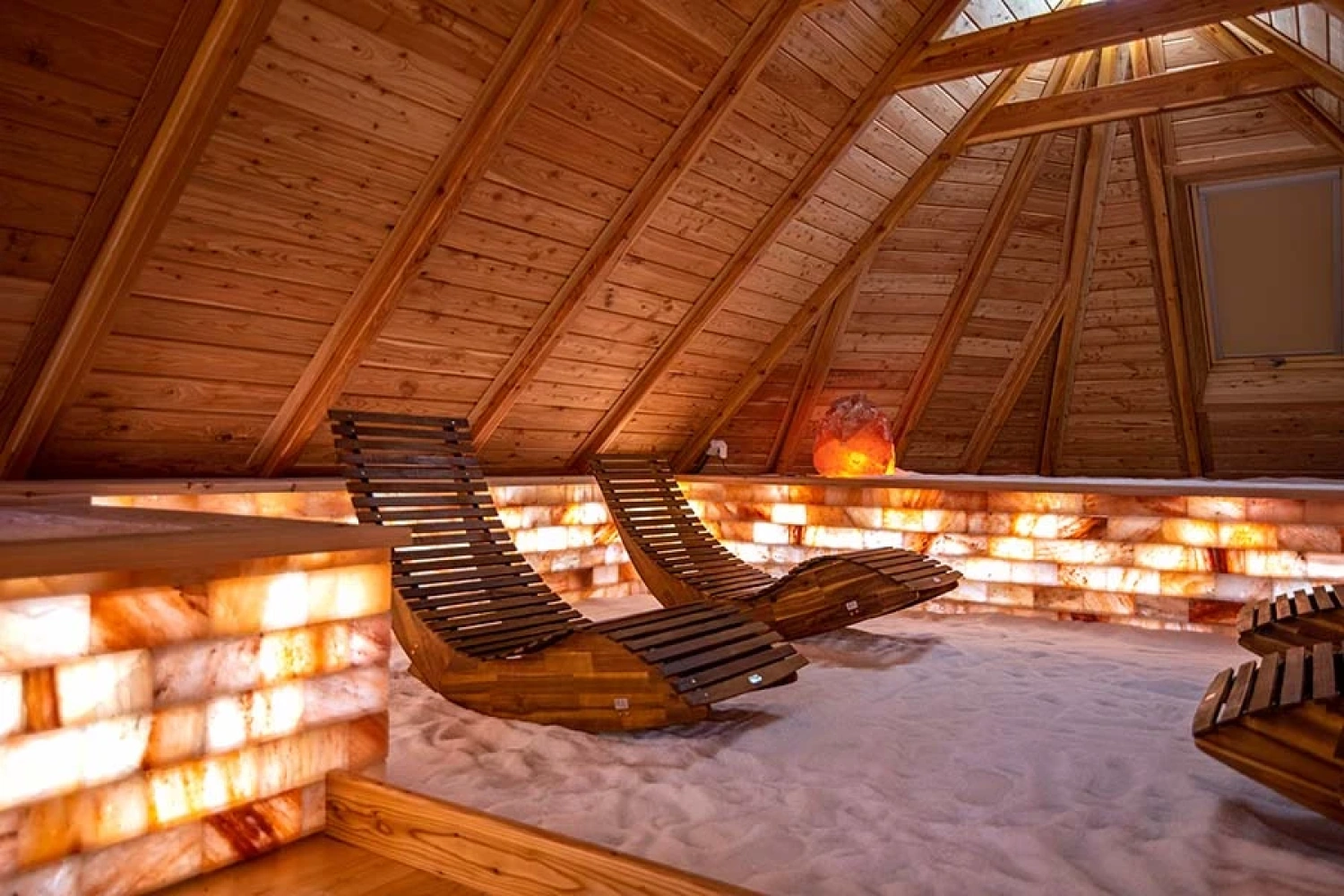 Na terenie ośrodka znajduje się także grota solna - nowa przestrzeń relaksacyjna, w której można skorzystać z dobroczynnego działania terapii solnej, wspierającej regenerację organizmu i poprawę samopoczucia.