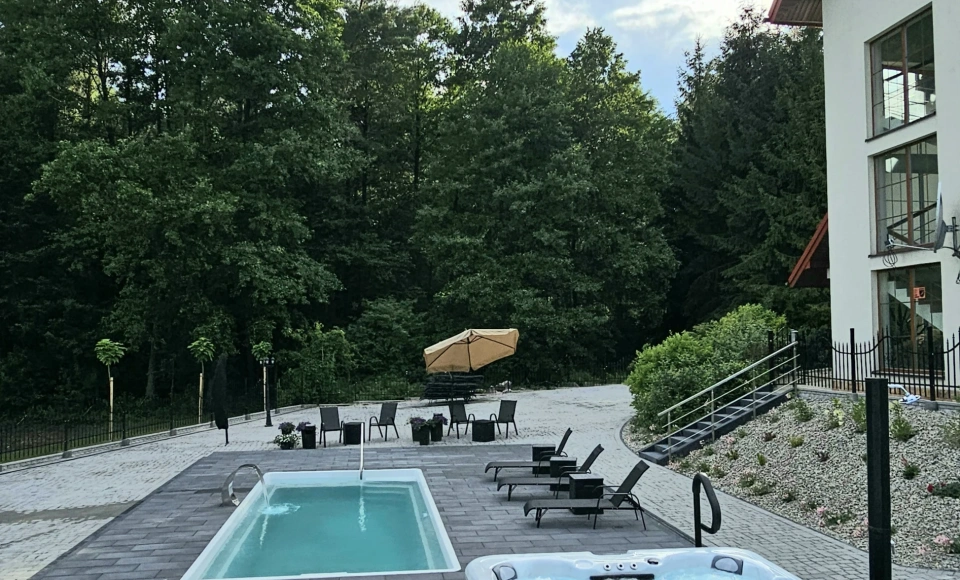 Leśny Dworek to miejsce, gdzie można spędzić odprężający czas na świeżym powietrzu. Do dyspozycji gości mamy zadaszoną strefę z podgrzewanymi basenami i jacuzzi oraz 2 leśne altanki z kominkowym grillem oraz leśny ogród.