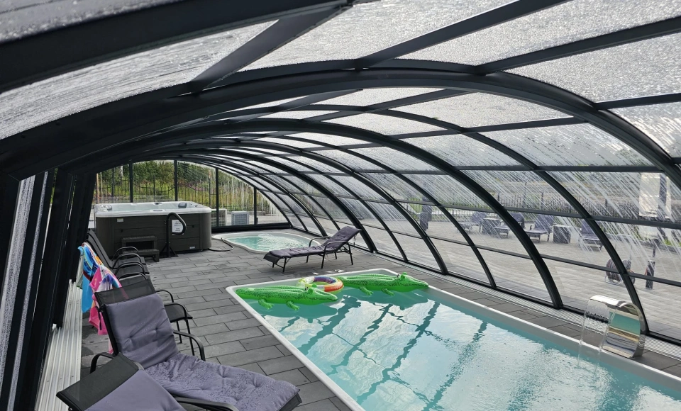 Otwarta w 2025 roku Zadaszona Strefa Basenowa z 2 podgrzewanymi i podświetlanymi basenami i Jacuzzi , przykryta zadaszeniem jest dużą atrakcją dla gości, czynną od maja do października .