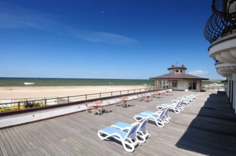 Hotel****Apollo położony w sercu Darłówka Wschodniego, przy samej plaży, zapewniający niezapomniany widok na morze aż po horyzont, otoczony od frontu ogrodem kwiatowym z fontanną.