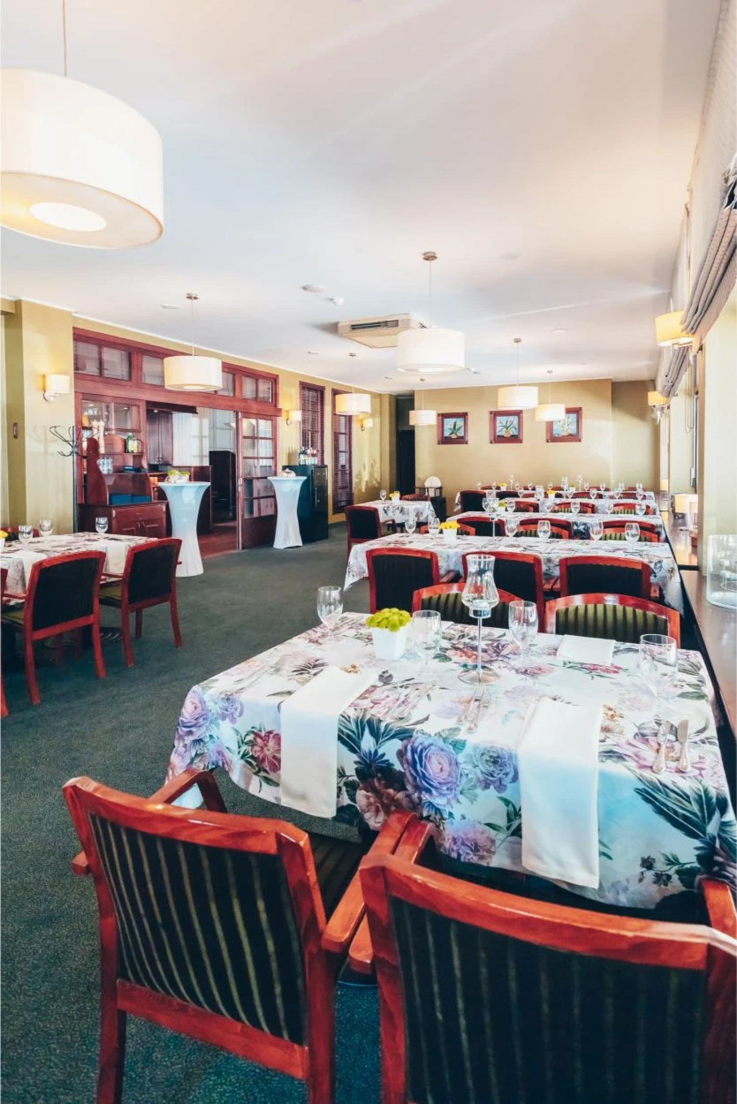 Śniadania podawane są w formie bufetu szwedzkiego. W klimatycznej sali restauracyjnej można zaplanować uroczyste kolacje, biznesowe lunche oraz imprezy integracyjne. Podczas posiłków można cieszyć się pięknym widokiem na zieleń za oknami.