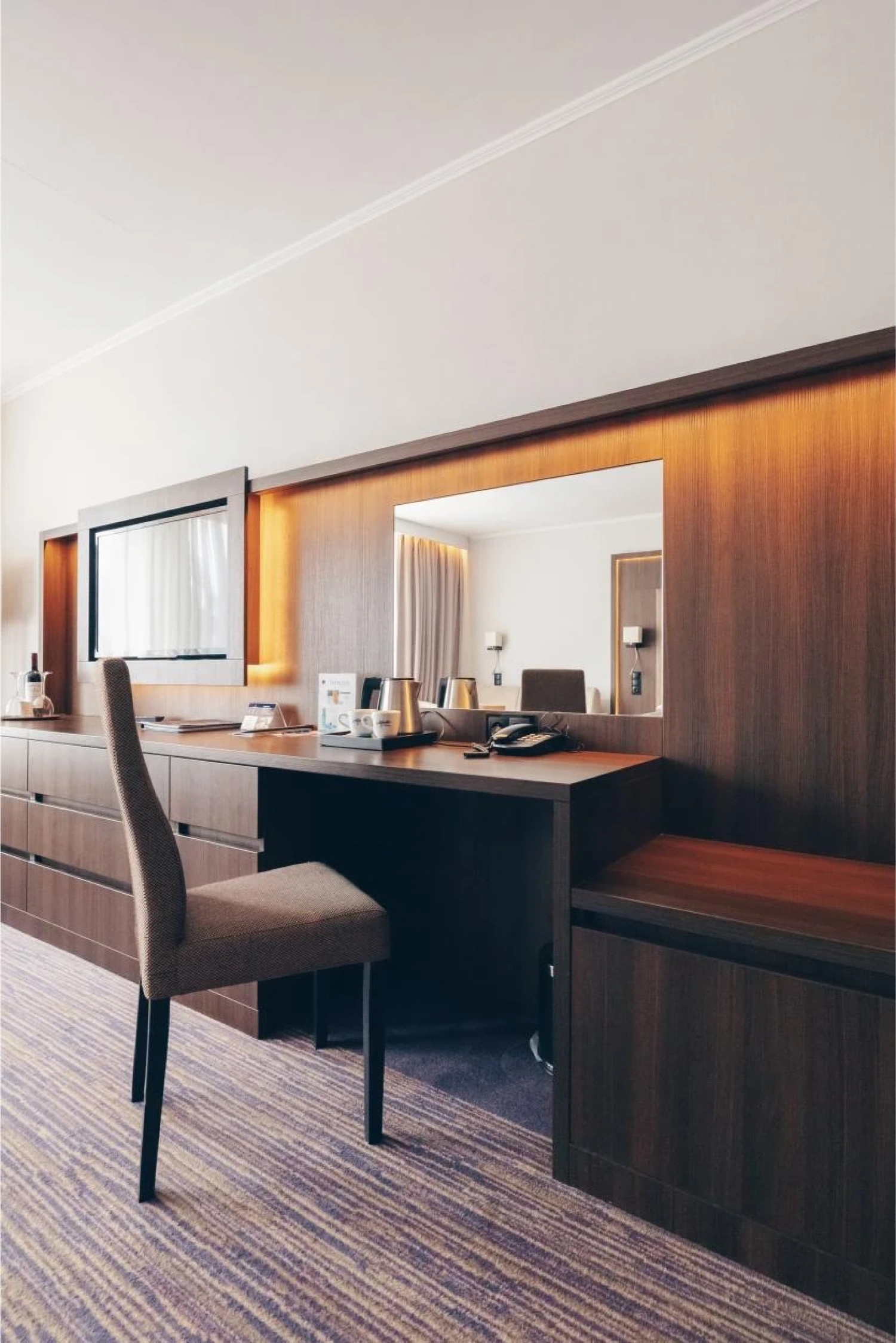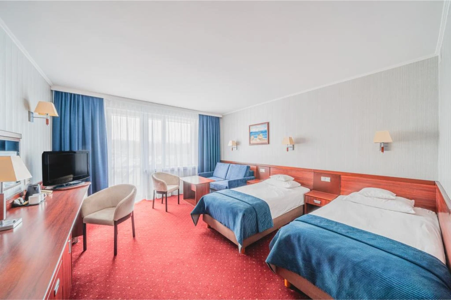 Podłogę pokrywa wykładzina. Aby zwiększyć liczbę miejsc noclegowych, można wstawić do pokoi dostawki w formie rozkładanej sofy. W ofercie znajdują się dwa pomieszczenia przystosowane do wymogów osób niepełnosprawnych.