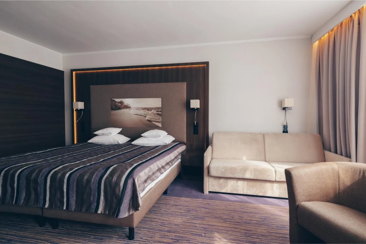 Hotel Lidia**** SPA & Wellness posiada 119 pokoi gościnnych i luksusowych apartamentów. Wnętrza są zachowane w ciepłych kolorach oraz przytulnym designie, dzięki czemu są idealnym miejscem na wypoczynek zarówno dla rodzin z dziećmi, jak i uczestników wydarzeń biznesowych.