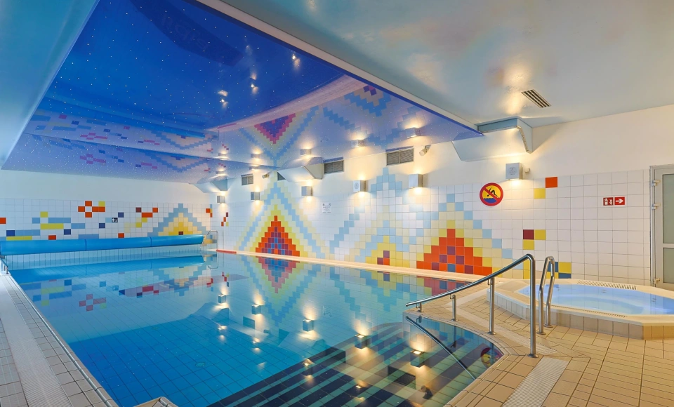 Każdy pokój posada indywidualną łazienkę z kabiną prysznicową. Znajdują się tam ręczniki, szlafrok, suszarka do włosów oraz zestaw kosmetyków. Goście mają dostęp do sejfu, telefonu, telewizji oraz internetu. W cenie noclegu wliczone jest śniadanie oraz nieograniczony dostęp do Kompleksu Wodnego i Świata Saun. Część pokoi jest klimatyzowanych w okresie wakacyjnym.