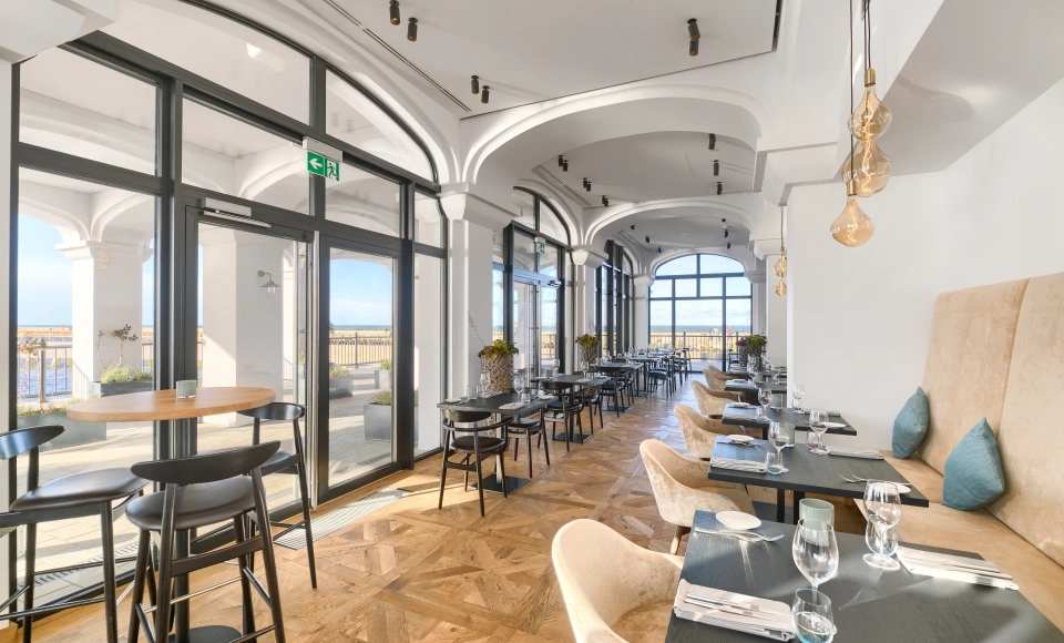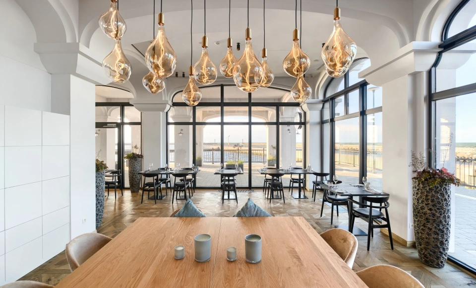 Brasserie LIDO to miejsce, w którym smak, styl i nadmorski klimat tworzą idealną harmonię. Eleganckie, przestronne wnętrze z panoramicznym widokiem na morze pozwala gościom zanurzyć się w wyjątkowej atmosferze. Za oknami przesuwają się statki i błękitne fale, a wewnątrz unosi się zapach dań inspirowanych kuchnią europejską, przygotowywanych z lokalnych składników i podanych w nowoczesnej, wyrafinowanej formie.