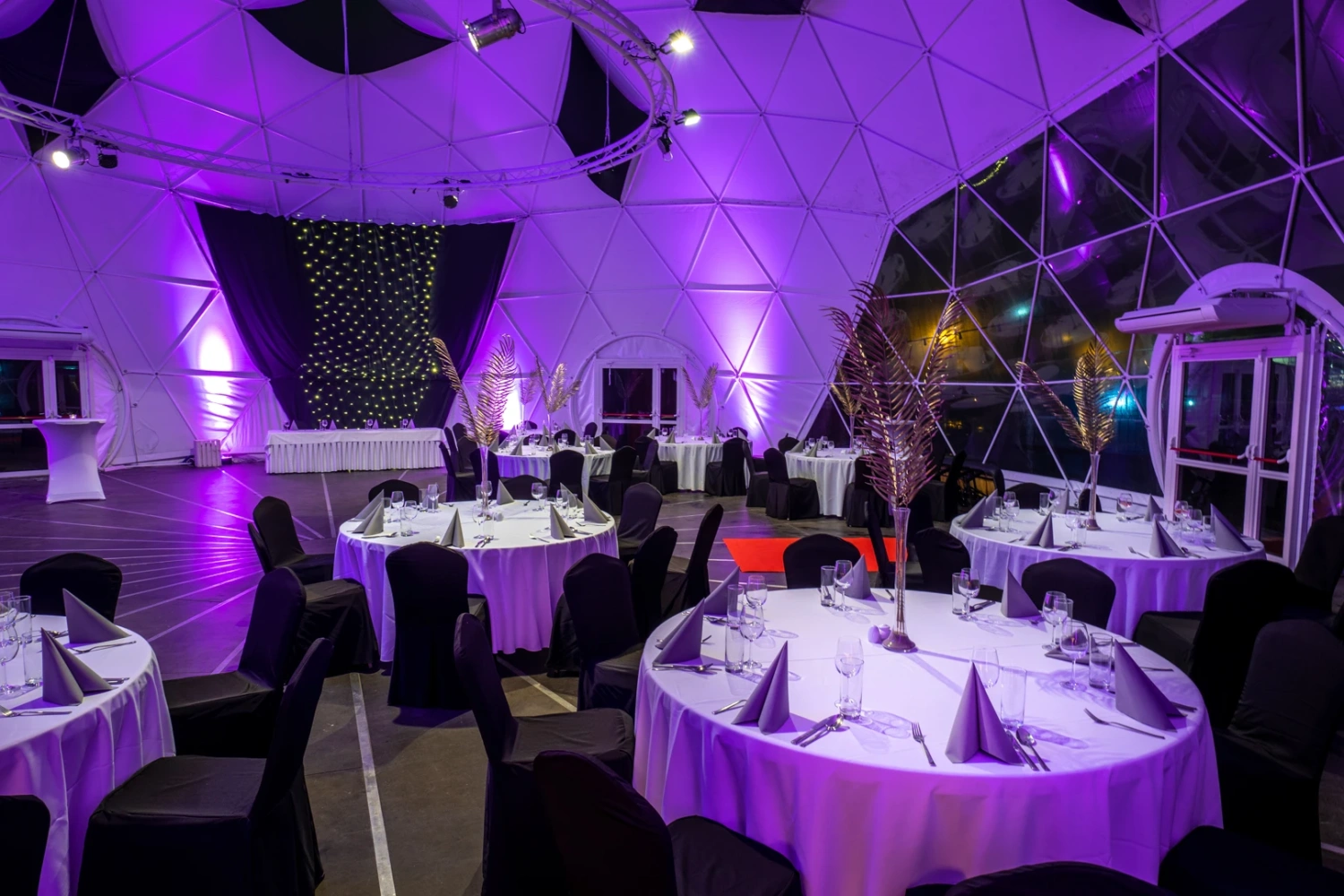 Ów namiot pozwala na zaproszenie nawet do 250 osób, oczywiście w zależności od ustawienia. Znajduje się w nim profesjonalne oświetlenie, nagłośnienie oraz niezbędne sprzęty.