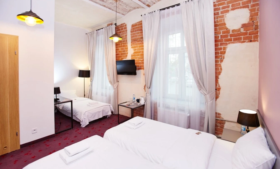 Wnętrza pokoi są utrzymane w stylu loftowym, charakterystycznym dla całego hotelu, co nadaje im wyjątkowy i nowoczesny wygląd. Jednocześnie starannie zachowano oryginalne elementy, które nawiązują do historii budynku, dzięki czemu goście mogą poczuć atmosferę dawnych czasów. Wygodne łóżka, miękkie pościele i eleganckie meble tworzą przytulną atmosferę, sprzyjającą wypoczynkowi i regeneracji.