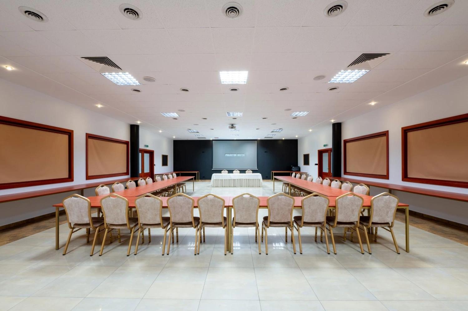 Nasza największa sala konferencyjna o powierzchni 250 m² pomieści nawet do 180 osób, a układ stołów i krzeseł można elastycznie dopasować do charakteru wydarzenia – od klasycznego ustawienia teatralnego, po konfiguracje typu podkowa czy bankiet.