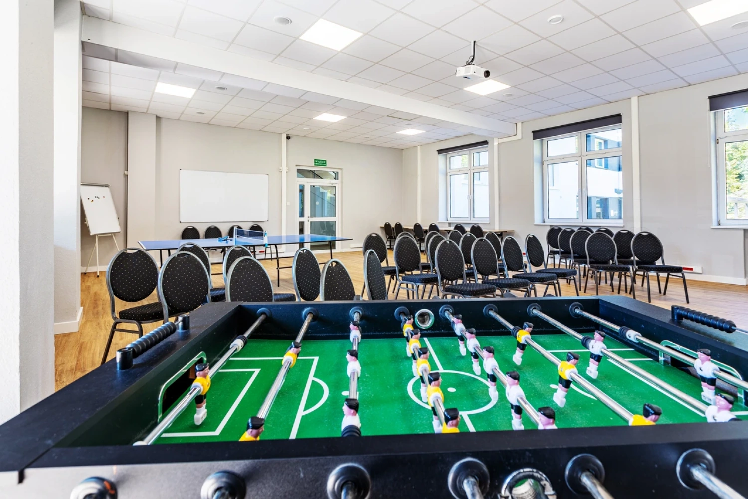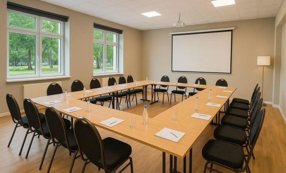 Resort Moderna dysponuje nowoczesną salą konferencyjną, która dzięki funkcjonalnemu wyposażeniu i przestronnej aranżacji pozwala na organizację spotkań biznesowych, szkoleń i eventów dla grup liczących do 80 osób. To doskonałe miejsce zarówno do pracy, jak i integracji w komfortowych warunkach.