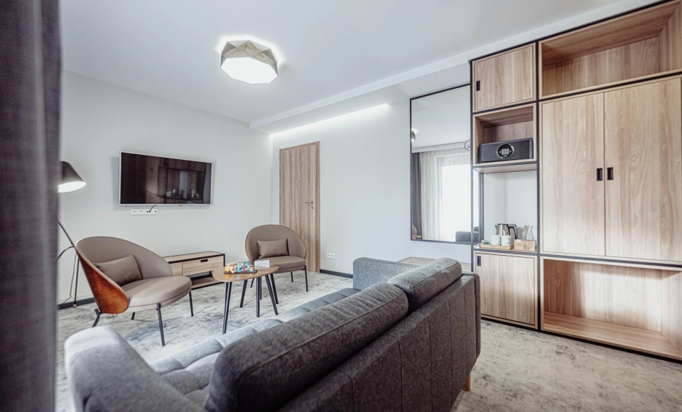 Każde z pomieszczeń wyposażone jest w wysokiej jakości meble, telewizory, minibary, telefony i szybki internet. Nie zabraknie też nowoczesnych, prywatnych łazienek i stylowego wystroju.