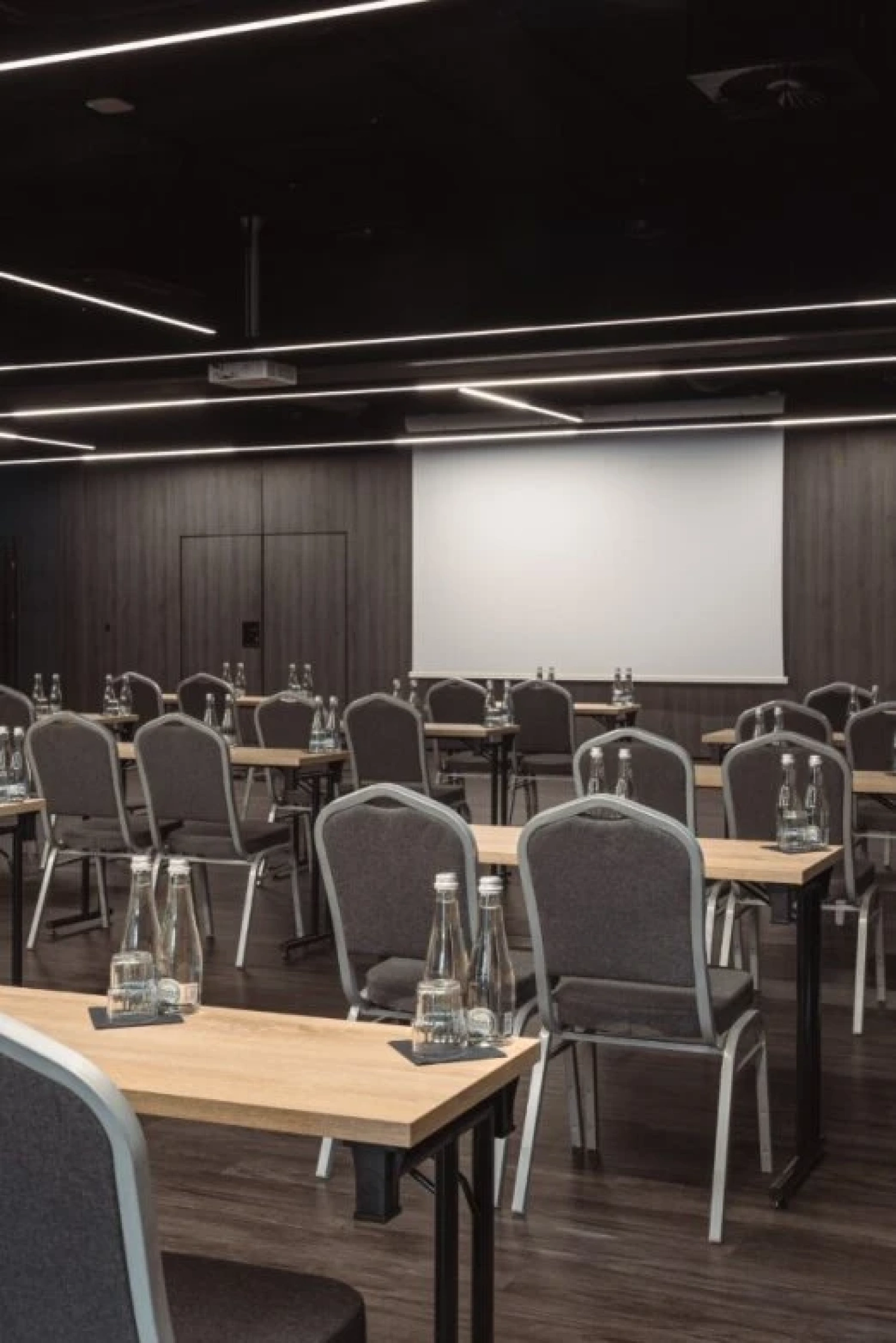 Obiekt to również nowoczesna przestrzeń konferencyjno-eventowa, o powierzchni 600m2. Dysponujemy 5 salami konferencyjny : sala Jodła- modułowa powierzchnia 200m2- dzielona na 3 mniejsze sale, łącznie dla 170 osób; sala Sosna o powierzchni 80m2, dla 60 osób, i sala Świerk o powierzchni 20m2 dla 12 osób, na kameralne spotkania zarządu.