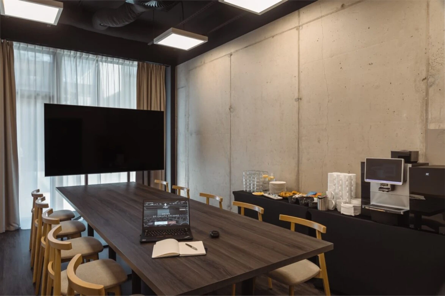 Sala Świerk to idealna przestrzeń 20m2, do kameralnych spotkań biznesowych lub warsztatów w małych grupach do 12 osób przy jednym stole.