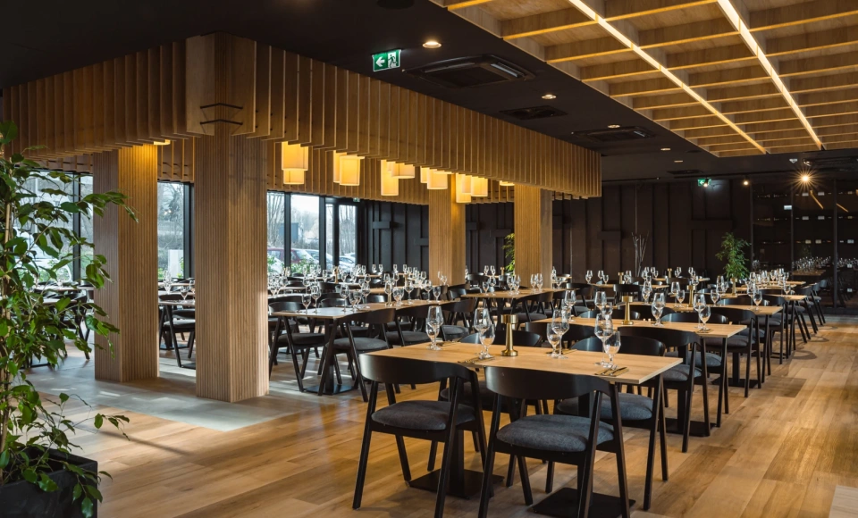 Sala Jodła, to modułowa, elegancka przestrzeń konferencyjno-bankietowa o wymiarze 198m2. idealna dla 170 osób na konferencje i bankiet.
