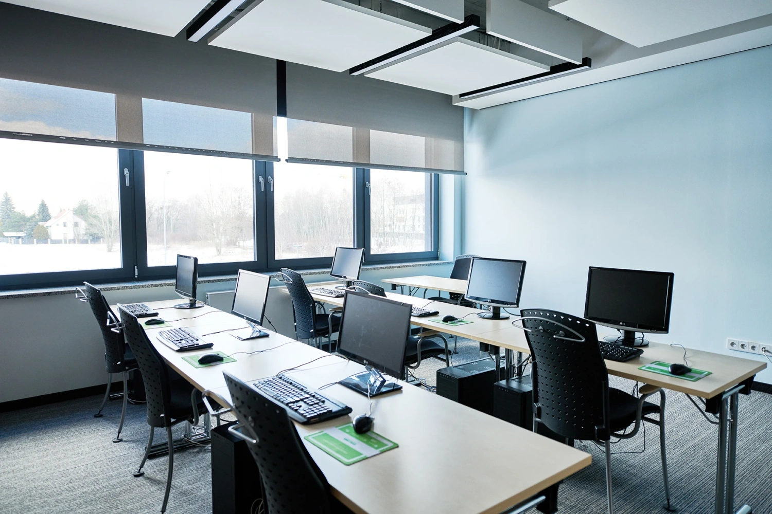 DAGMA Szkolenia IT to przestrzeń stworzona z myślą o edukacji i biznesie, w której nowoczesna infrastruktura spotyka się z profesjonalną obsługą. Obiekt dysponuje salami szkoleniowymi wyposażonymi w zaawansowane rozwiązania multimedialne, co zapewnia komfort i efektywność prowadzonych zajęć oraz spotkań.